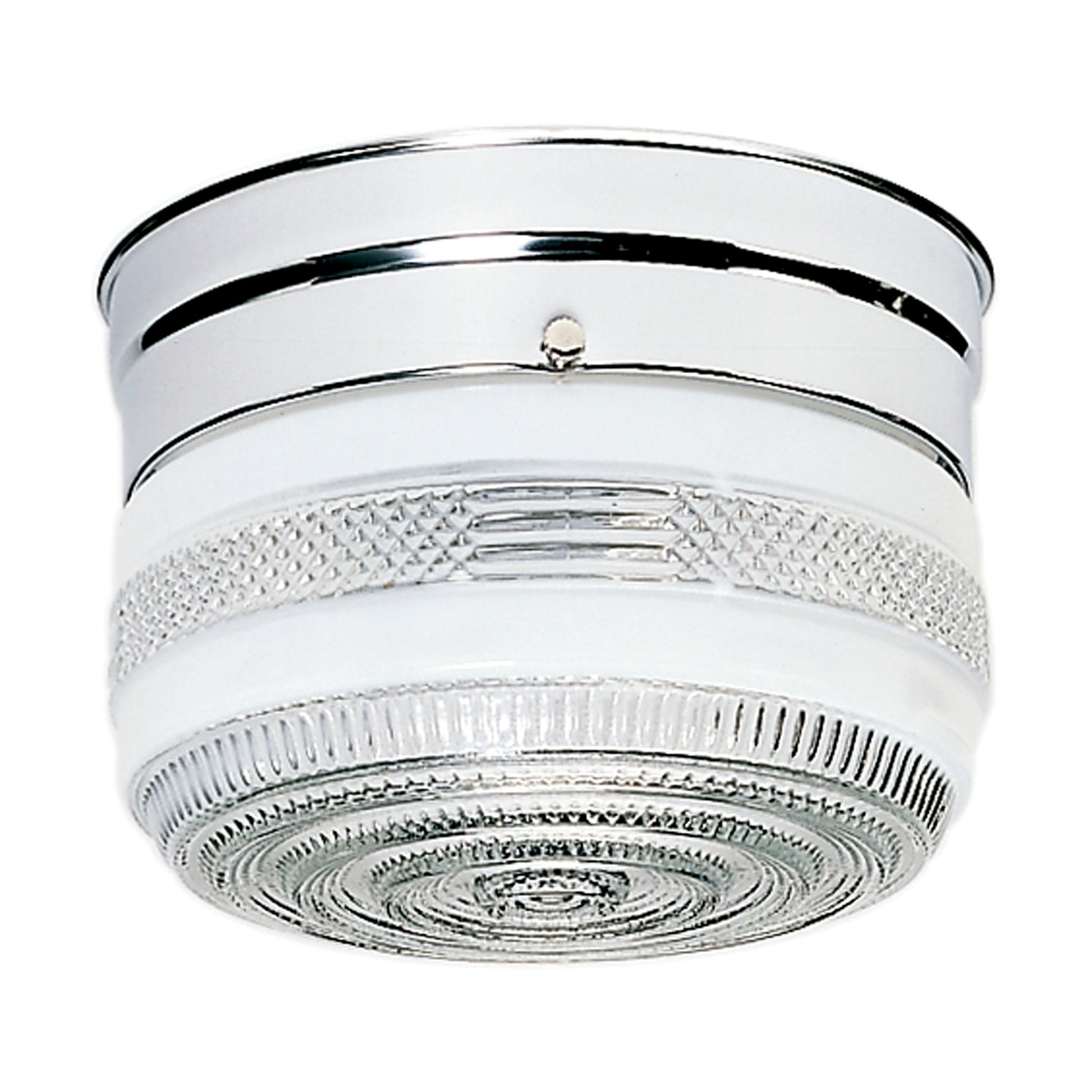 1 Light - 6" - Flush Mount - Small Crystal / White Drum - Polished Chrome Finish