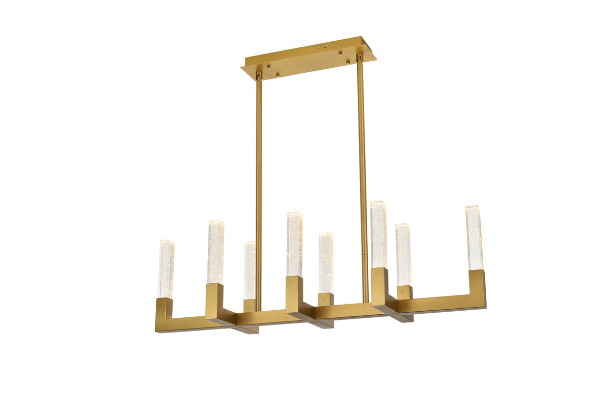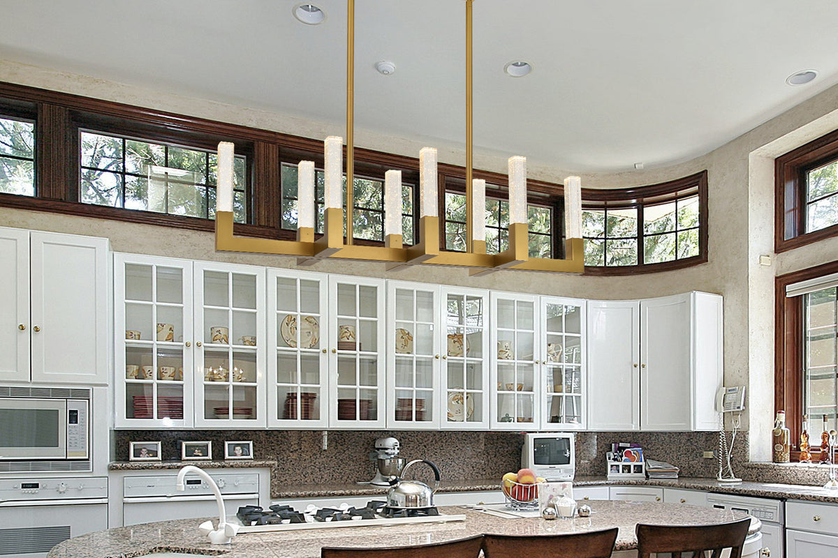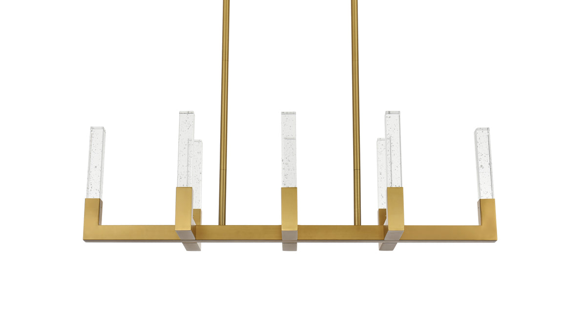 "Introducing the Noemi 42-inch pendant—an extraordinary blend of contemporary design and industrial elegance. With its chic linear silhouette, this pendant light adds a modern flair to your decor. The seeded glass crystal rods create a captivating play of light, enhancing your space with timeless elegance. Crafted from enduring iron and ETL certified for safety, the Noemi ensures a perfect balance of enduring quality and brilliant illumination with energy-efficient LED lights. Customize your ambiance effortlessly with the adjustable color temperature feature. Whether you seek a relaxed evening glow, a neutral and focused atmosphere, or a vibrant and energizing radiance, our chandelier provides the flexibility to cater to your preferences. Elevate your space with personalized illumination, creating the perfect setting for every moment. The Noemi 42-inch pendant is a statement of sophistication and functionality for your home."