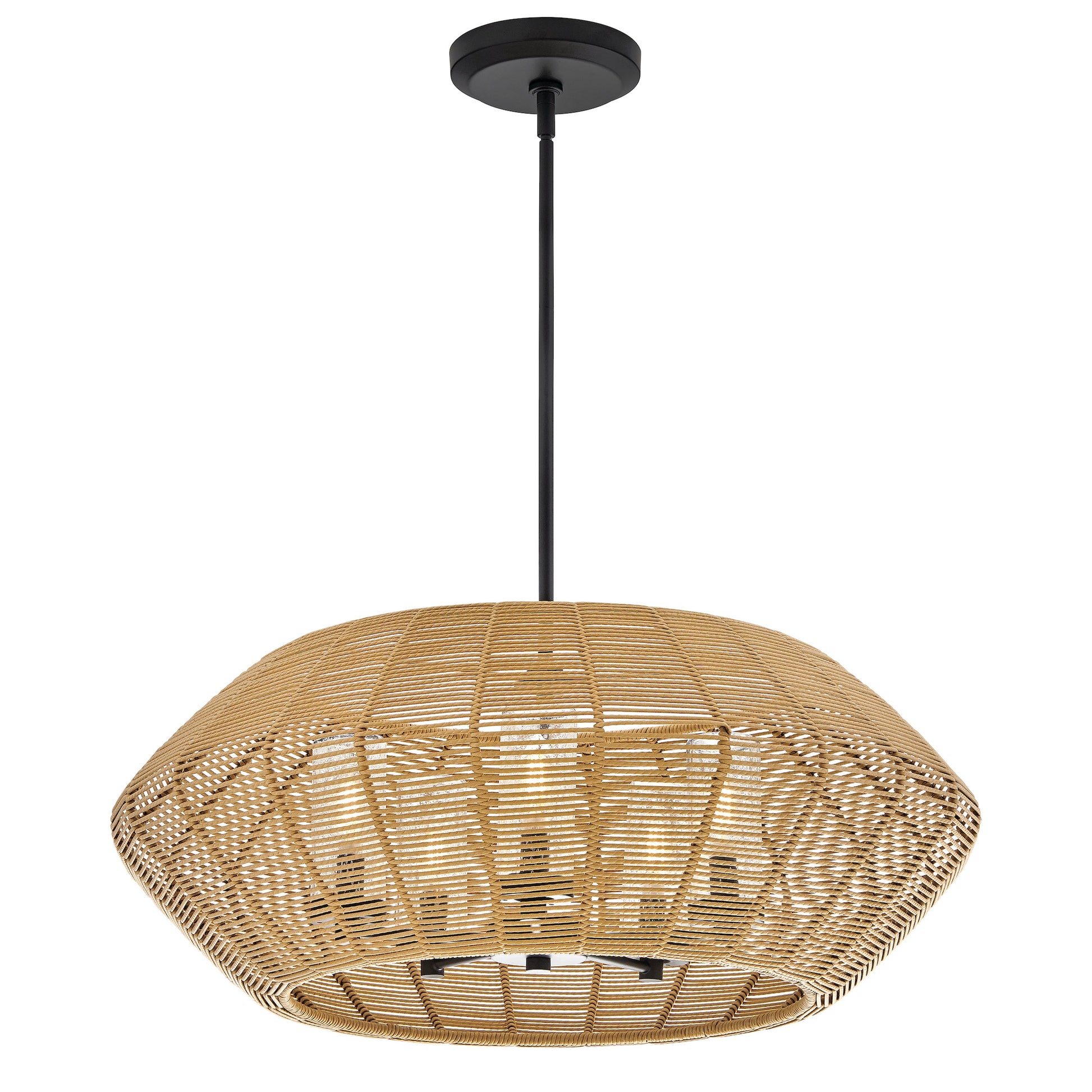Luca's coastal vibe is permeated with a slightly exotic edge. The bold silhouette showcases a robust, weather-resistant, woven drum shade and candelabra lamps enclosed in clear, seedy glass for plenty of functional light. Offered in a variety of finish options. Luca is part of the Lisa McDennon Collection.