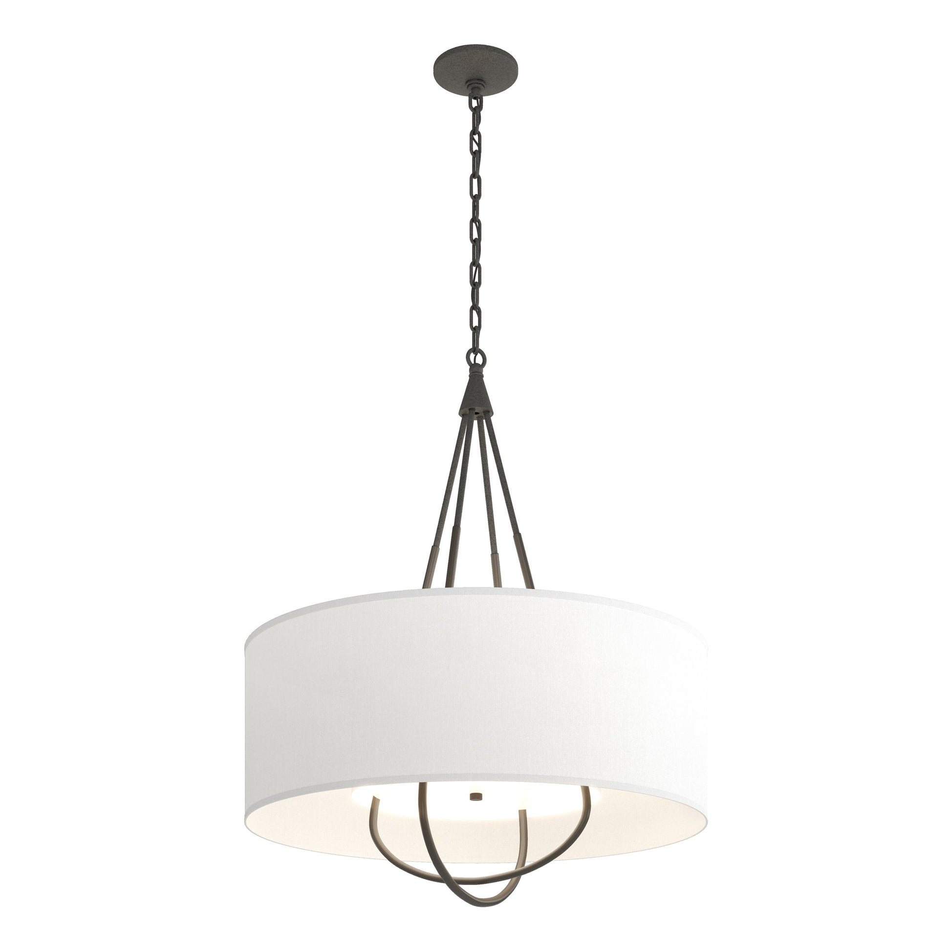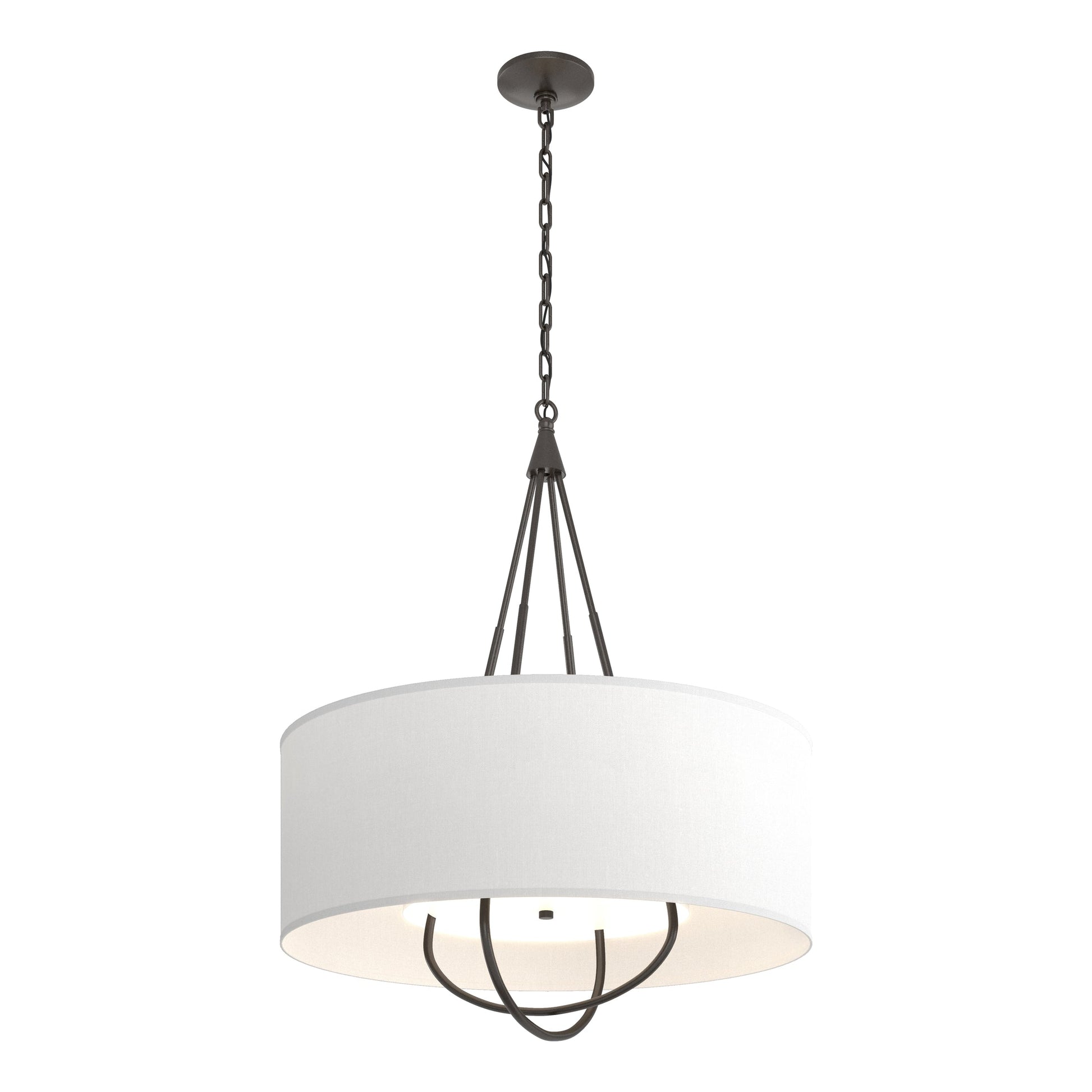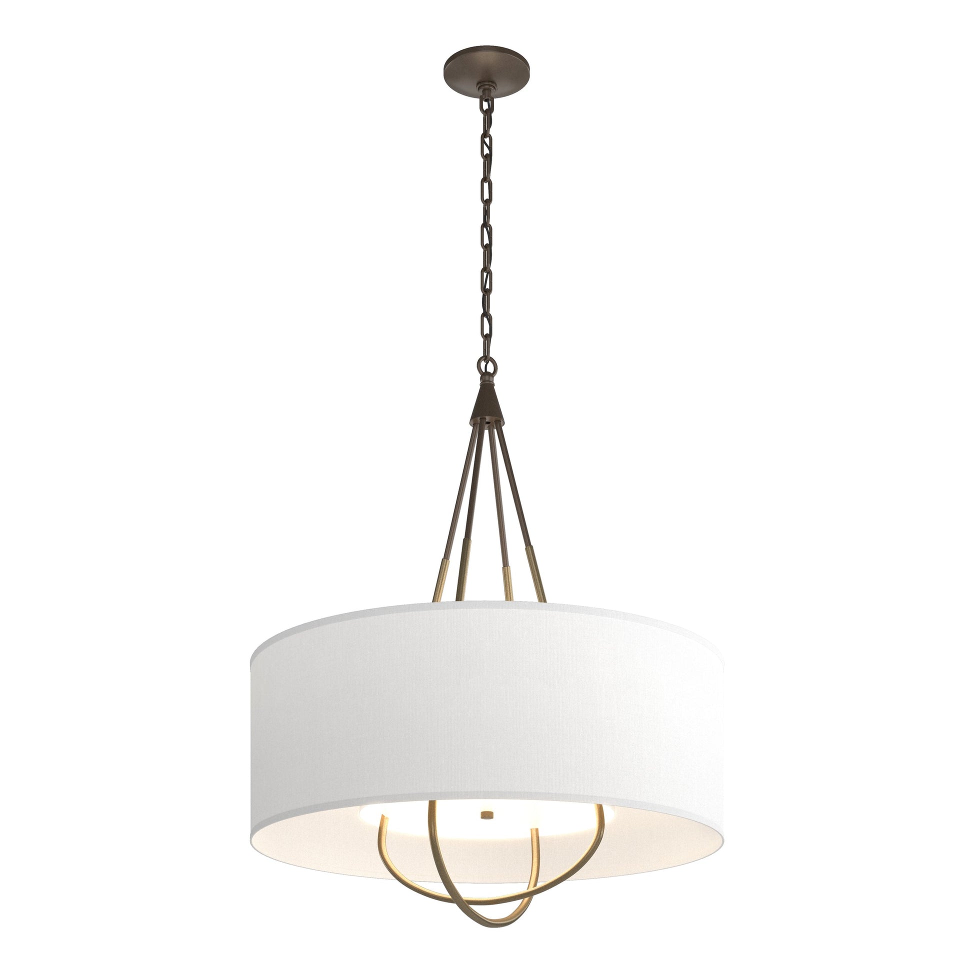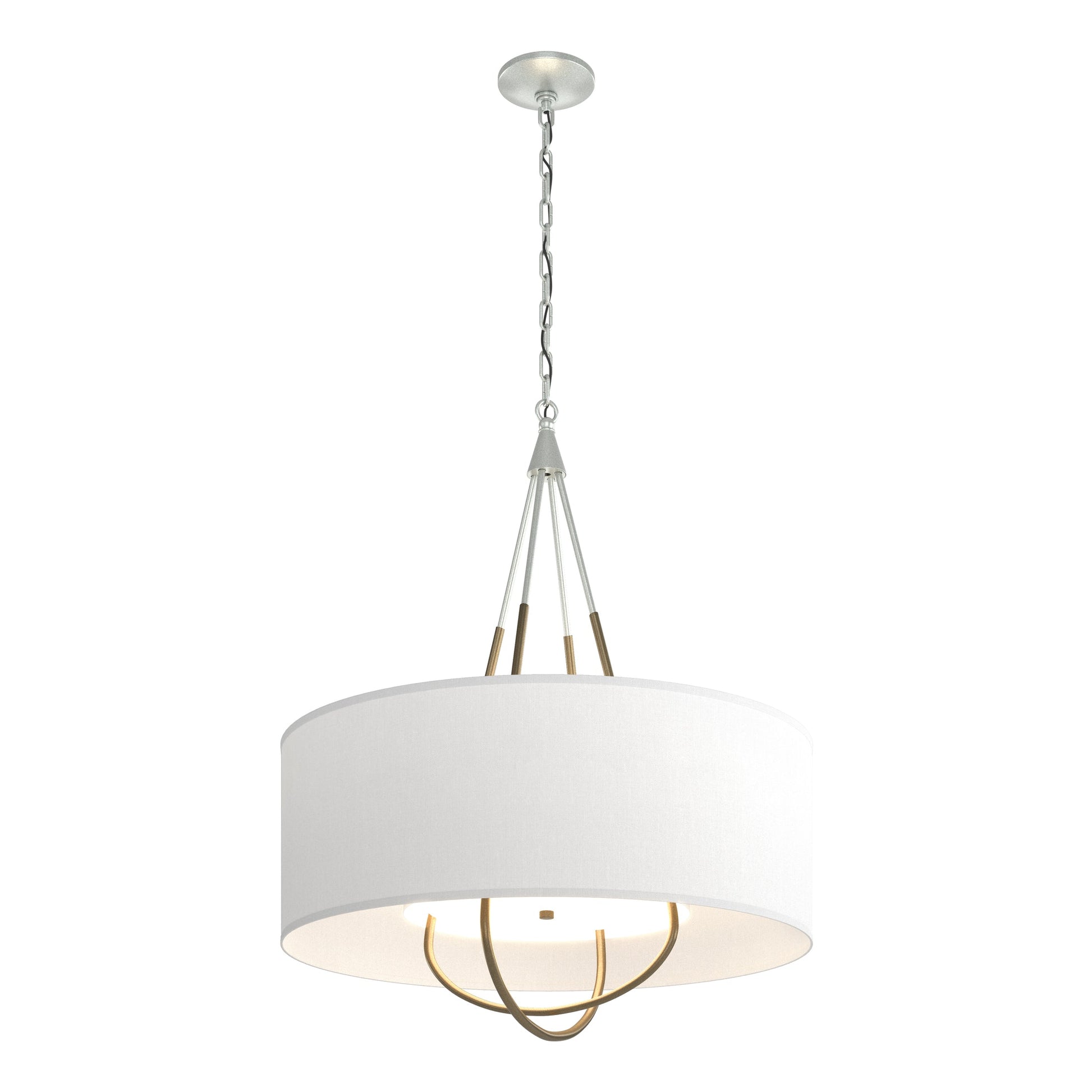 Refinement of materials and purity of line combine to make the Loop Pendant an elegant and versatile choice. Explore the many options this fixture offers—select a base finish for the canopy and chain, an accent finish for the intercrossed loops, and multiple outer shade color choices. A white inner shade gracefully diffuses the light while providing a tailored detail.