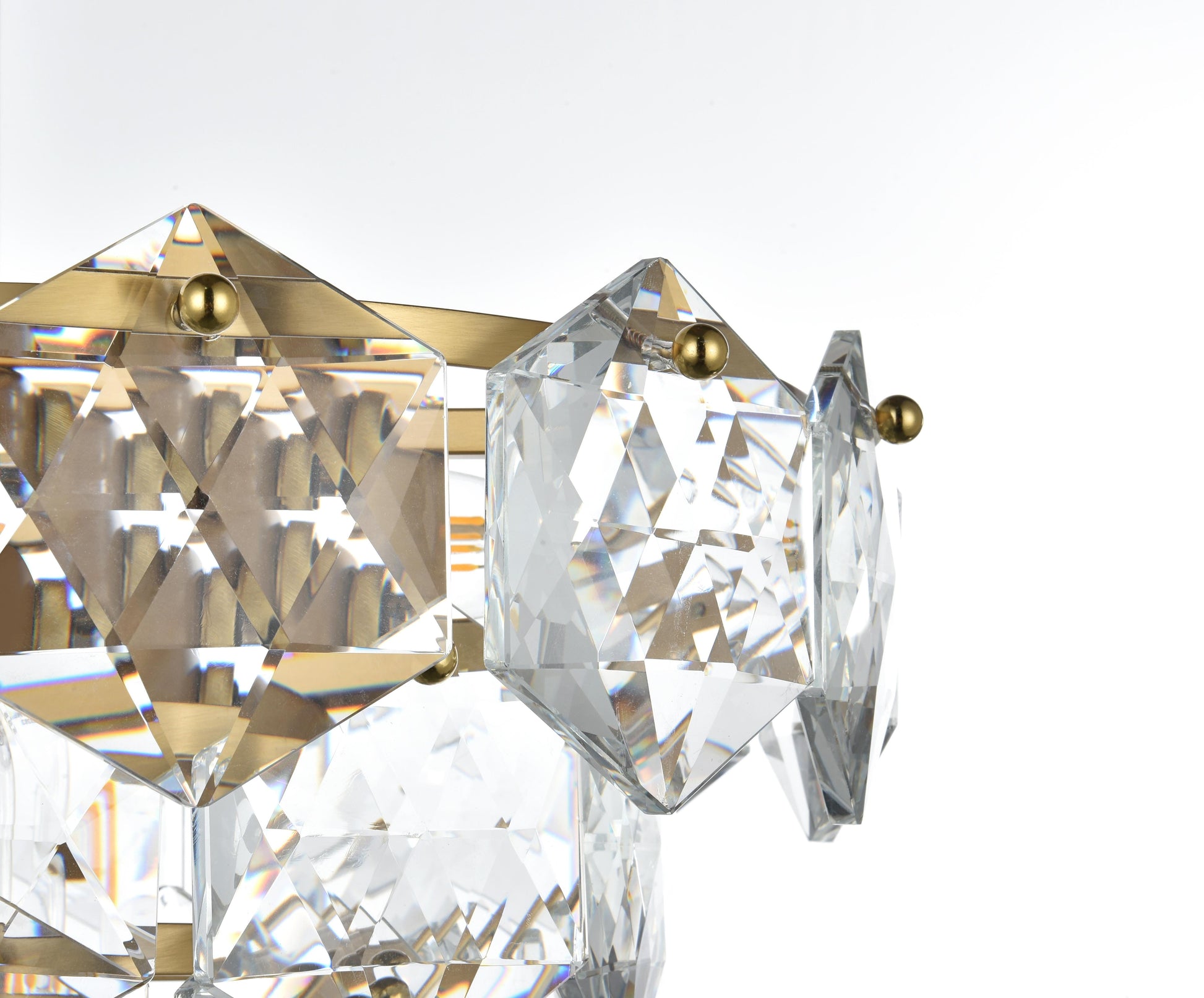 Add a touch of sophistication and shine to your space with this cascading crystal flush mount light. Designed with a multi-tier arrangement of six-sided faceted crystals, this fixture creates a mesmerizing interplay of light and shadow, making it a standout addition to any room. Its sturdy iron frame is paired with your choice of a chrome finish for a sleek, modern aesthetic or satin gold for a warm, opulent feel. The fixture includes six E12 sockets (bulbs sold separately) and is fully dimmable, giving you the ability to set the perfect ambiance. The matching canopy finish completes the cohesive look. Compact yet visually impactful, this flush mount is ideal for kitchens, dining rooms, living rooms, or offices, offering both functional illumination and a dazzling decorative element.