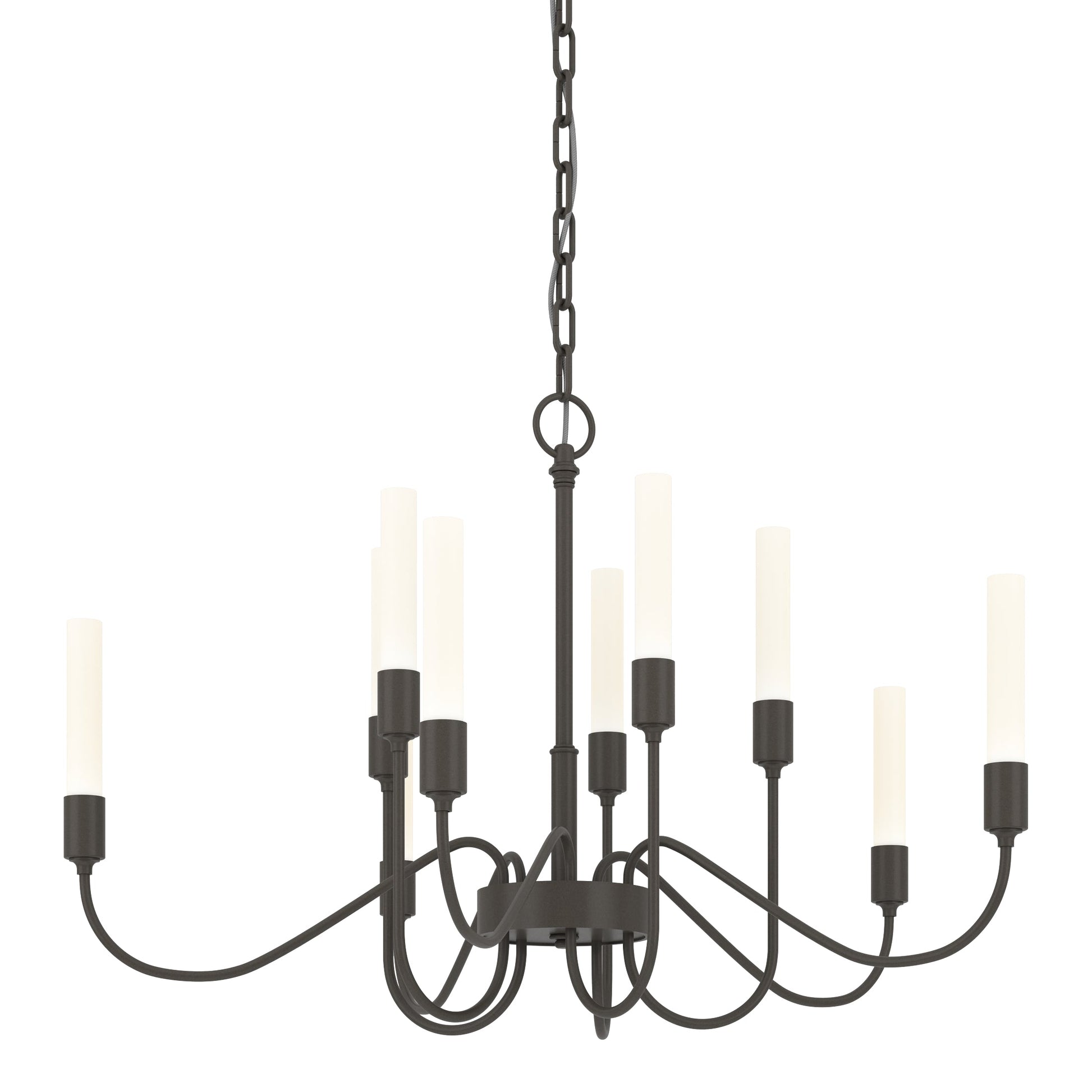 Finely formed, 10 steel arms curve upward to support slender glass that look like the tulip buds that might be found in the town of Lisse in Holland. Inspired by Holland, but crafted by artisans here at our Vermont forge, each piece is unique.