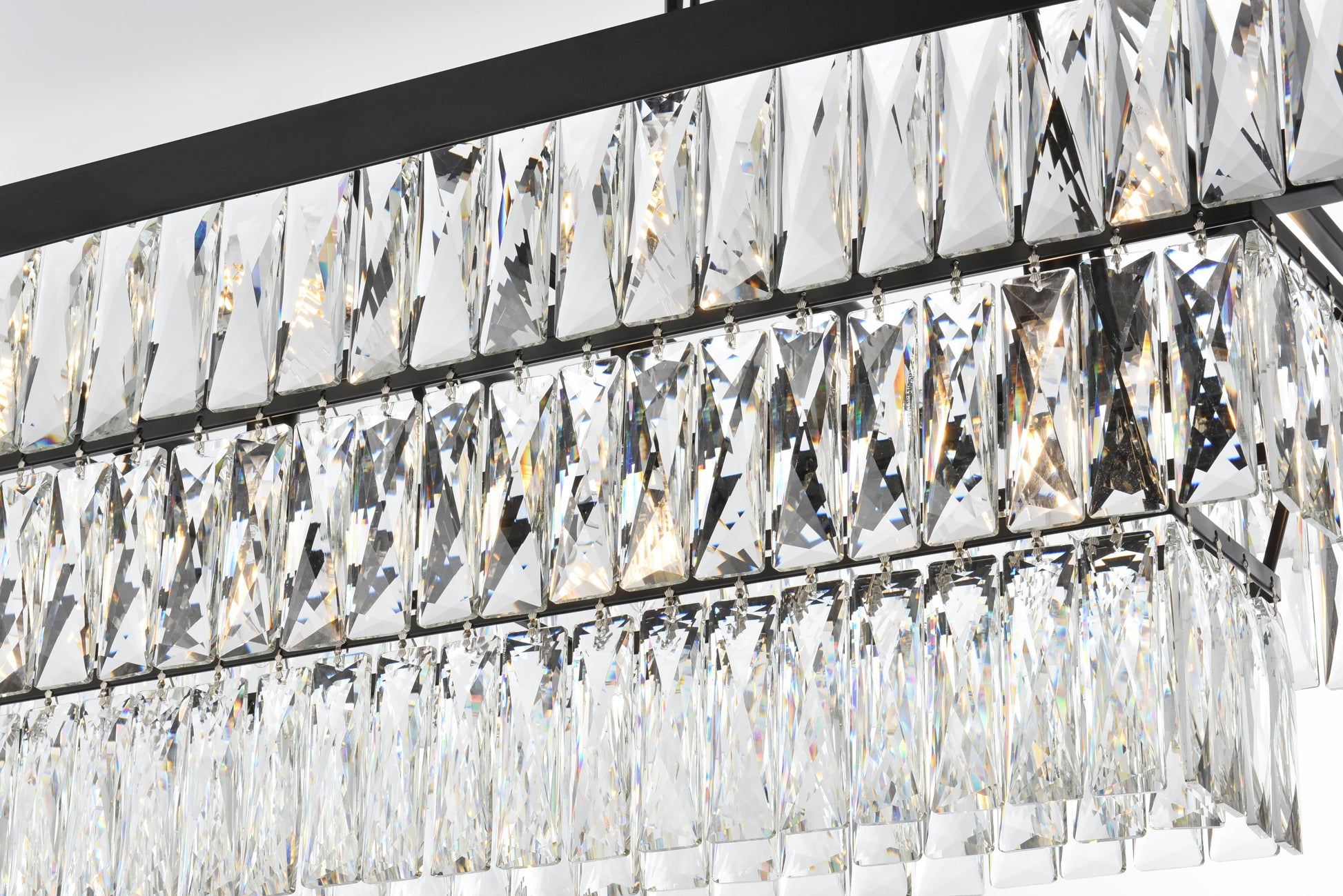 Transform your space with this spectacular linear pendant that reinvents crystal lighting for contemporary interiors. The bold rectangular frame suspends two perfectly proportioned crystal tiers, creating a mesmerizing interplay of light and structure. Each precisely cut crystal is strategically positioned to maximize light play, producing brilliant refractions that dance across your space. The strong horizontal presence makes this fixture an ideal centerpiece above dining tables, conference rooms, or in grand living spaces. The thoughtful construction marries industrial strength with crystalline delicacy, as the robust metal frame appears to float above while supporting the spectacular crystal arrangement. Whether styled in reflective chrome, sophisticated black, or warm satin gold, this pendant commands attention through its architectural presence. The linear composition offers a fresh interpretation of crystal lighting, where clean lines and geometric precision meet the spectacular light performance of premium crystal. This fixture doesn't merely illuminate – it defines space through its commanding horizontal presence while creating an ever-changing display of light and shadow.