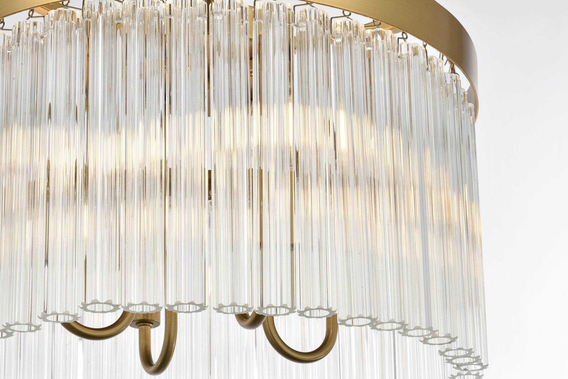 Bring brilliance to your space with this single-tier flush mount light, designed to combine low-profile functionality with stunning aesthetics. Crafted from durable iron and adorned with clear ribbed glass, this fixture refracts light into a mesmerizing display, transforming any room into a radiant haven. Perfect for rooms with lower ceilings, such as hallways, bedrooms, or entryways, this flush mount is available in chrome for a sleek modern touch, black for bold contrast, or satin gold for a warm, inviting glow. Its compact design ensures practicality without sacrificing style, making it an ideal choice for spaces that deserve a touch of glamour. Light bulbs sold separately.
