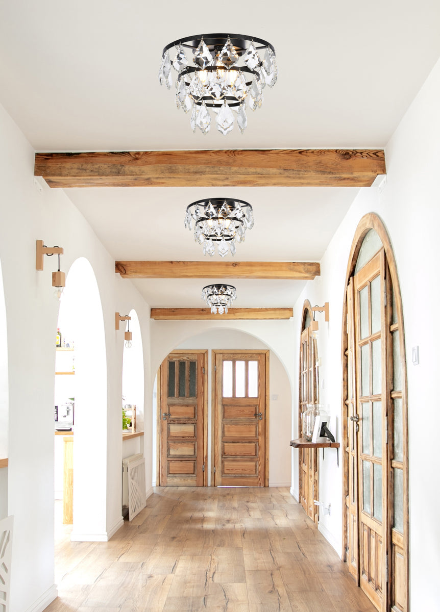 Install this flush mount in any room to give an elegant look. This stunning light features hand painted finish and clear brillant crystals which gives a classy look. Set a cozy atmosphere when you switch on this dazzling fixture and captivate your guests.