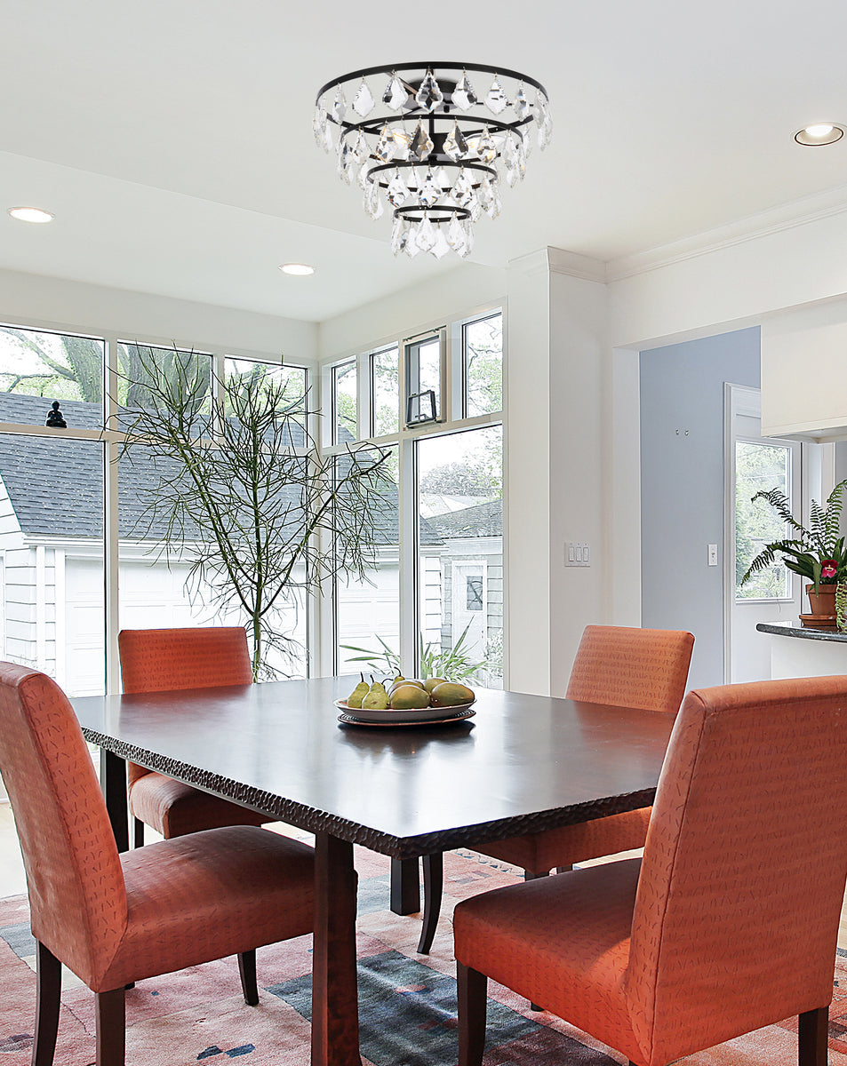 Install this flush mount in any room to give an elegant look. This stunning light features hand painted finish and clear brillant crystals which gives a classy look. Set a cozy atmosphere when you switch on this dazzling fixture and captivate your guests.