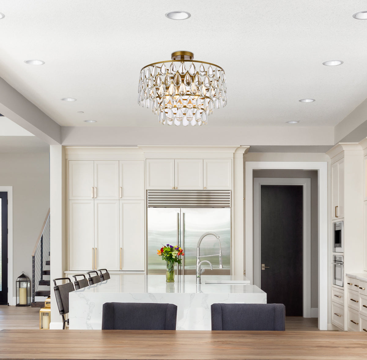 Install this flush mount in any room to give an elegant look. This stunning light features hand painted finish and clear brillant crystals which gives a classy look. Set a cozy atmosphere when you switch on this dazzling fixture and captivate your guests.