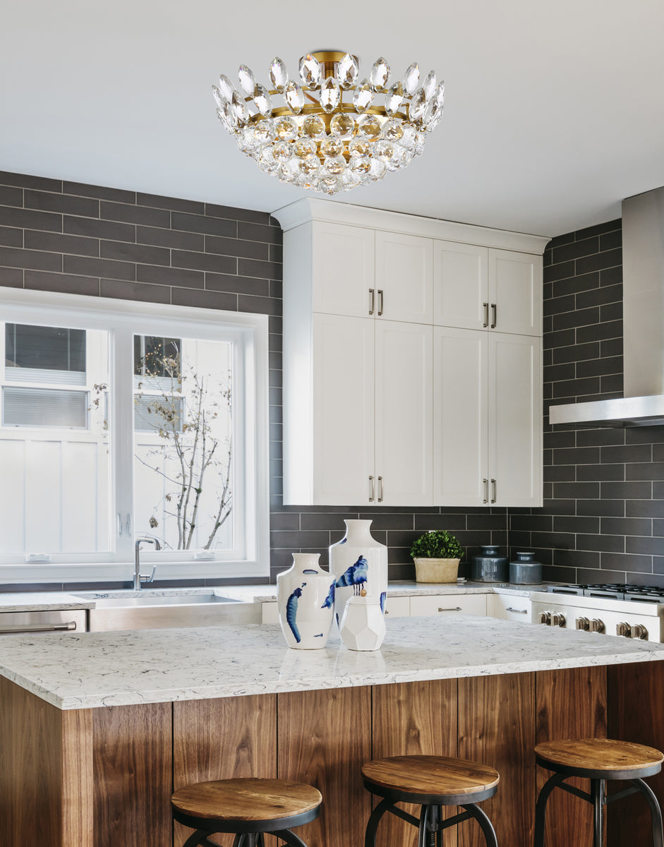 Install this flush mount in any room to give an elegant look. This stunning light features hand painted finish and clear brillant crystals which gives a classy look. Set a cozy atmosphere when you switch on this dazzling fixture and captivate your guests.