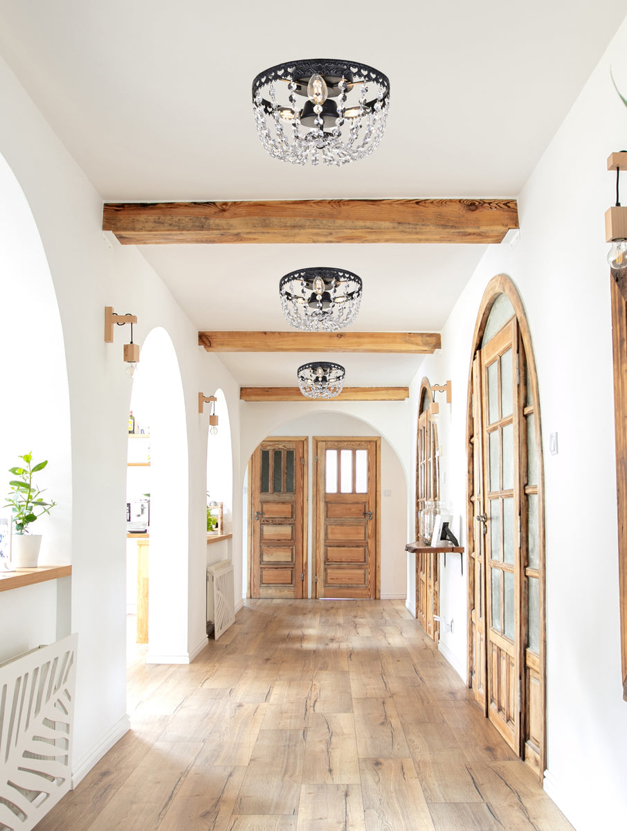 Install this flush mount in any room to give an elegant look. This stunning light features hand painted finish and clear brillant crystals which gives a classy look. Set a cozy atmosphere when you switch on this dazzling fixture and captivate your guests.