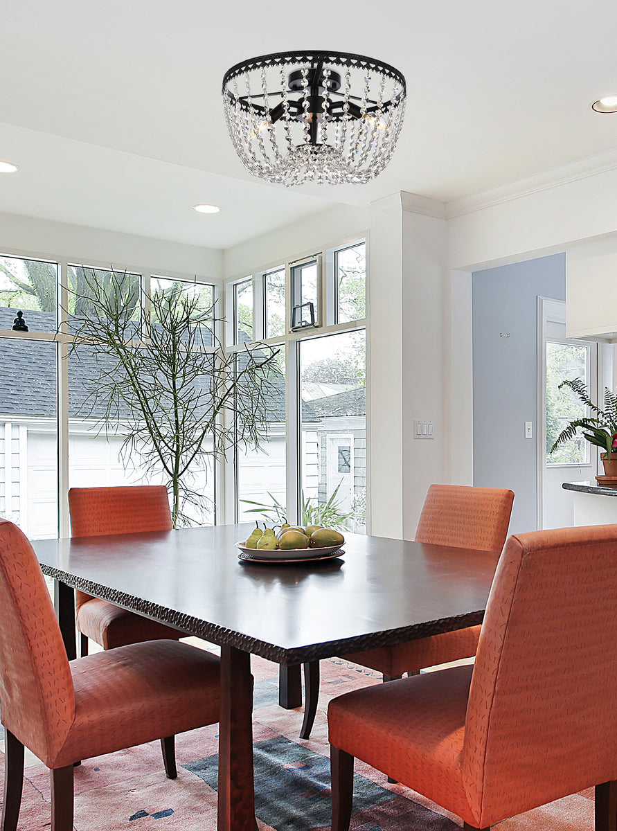 Install this flush mount in any room to give an elegant look. This stunning light features hand painted finish and clear brillant crystals which gives a classy look. Set a cozy atmosphere when you switch on this dazzling fixture and captivate your guests.