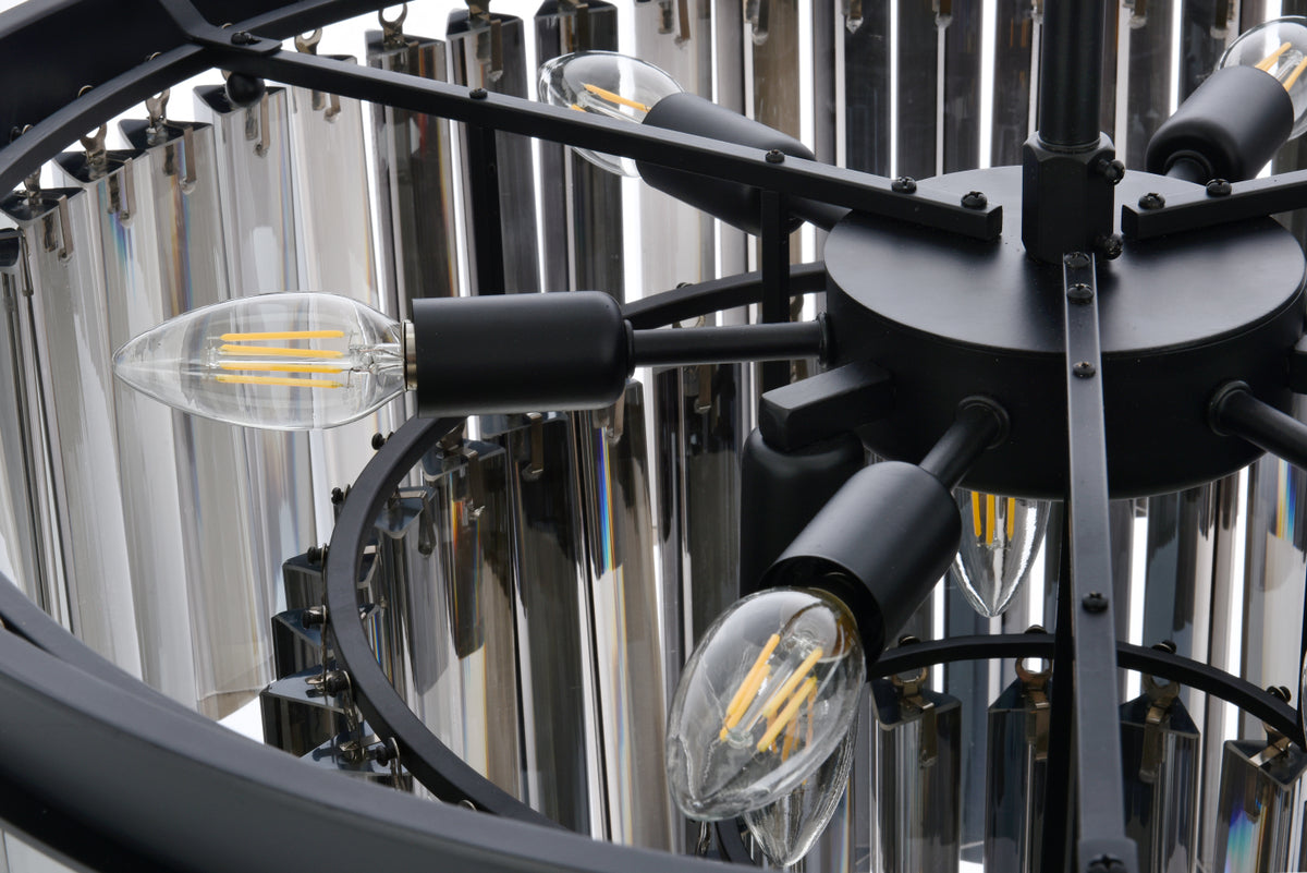 Sydney 9 light Matte Black Chandelier Silver Shade (Grey) Royal Cut Crystal