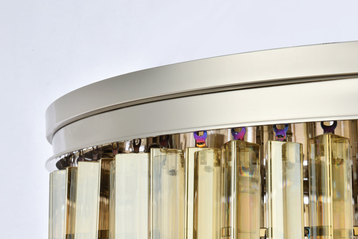 Sydney 17 light polished nickel Flush Mount Golden Teak (Smoky) Royal Cut Crystal