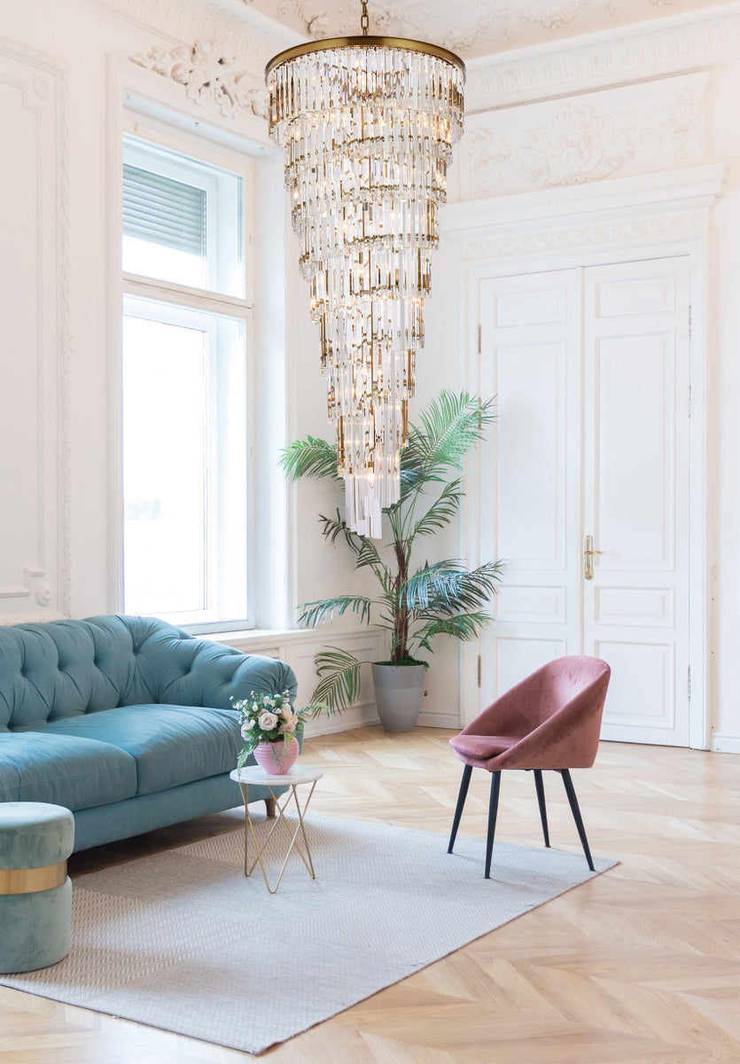 Illuminate your space with the mesmerizing beauty of our modern glam crystal lighting. This exquisite fixture features long, slender shimmering triangular crystal rods suspended from a durable iron frame. With multiple layers of crystals, it creates a captivating cascade of light that will transform your dining table, living room, or office into a dazzling haven. The modern glam design blends seamlessly with various interior styles, while the high-quality materials ensure durability and long-lasting brilliance. Elevate your decor with this stunning crystal lighting and immerse yourself in a world of opulence and sophistication.