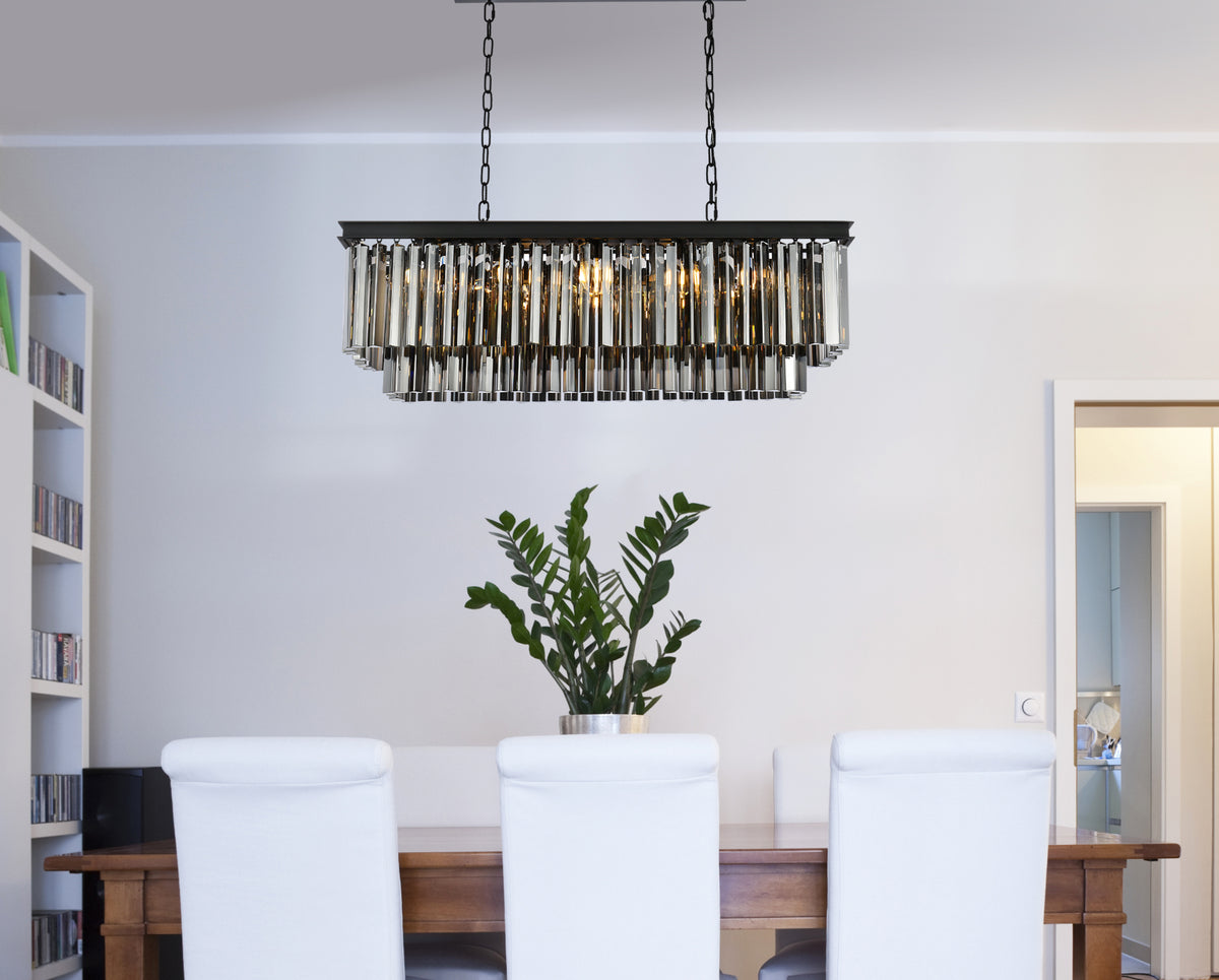 Bring the splendor of the ballroom into your home with a sparkling Sydney fixture. Stunning in foyers, dining rooms, or stairwells, the Sydney collection brings to mind the glamour of the Roaring Twenties. Features glimmering tiers of royal-cut clear, golden-teak, or Silver-shade crystals. In Matte Black or polished-nickel finishes, this sturdy, yet delicate, pendant lamp will be the perfect centerpiece for any décor.