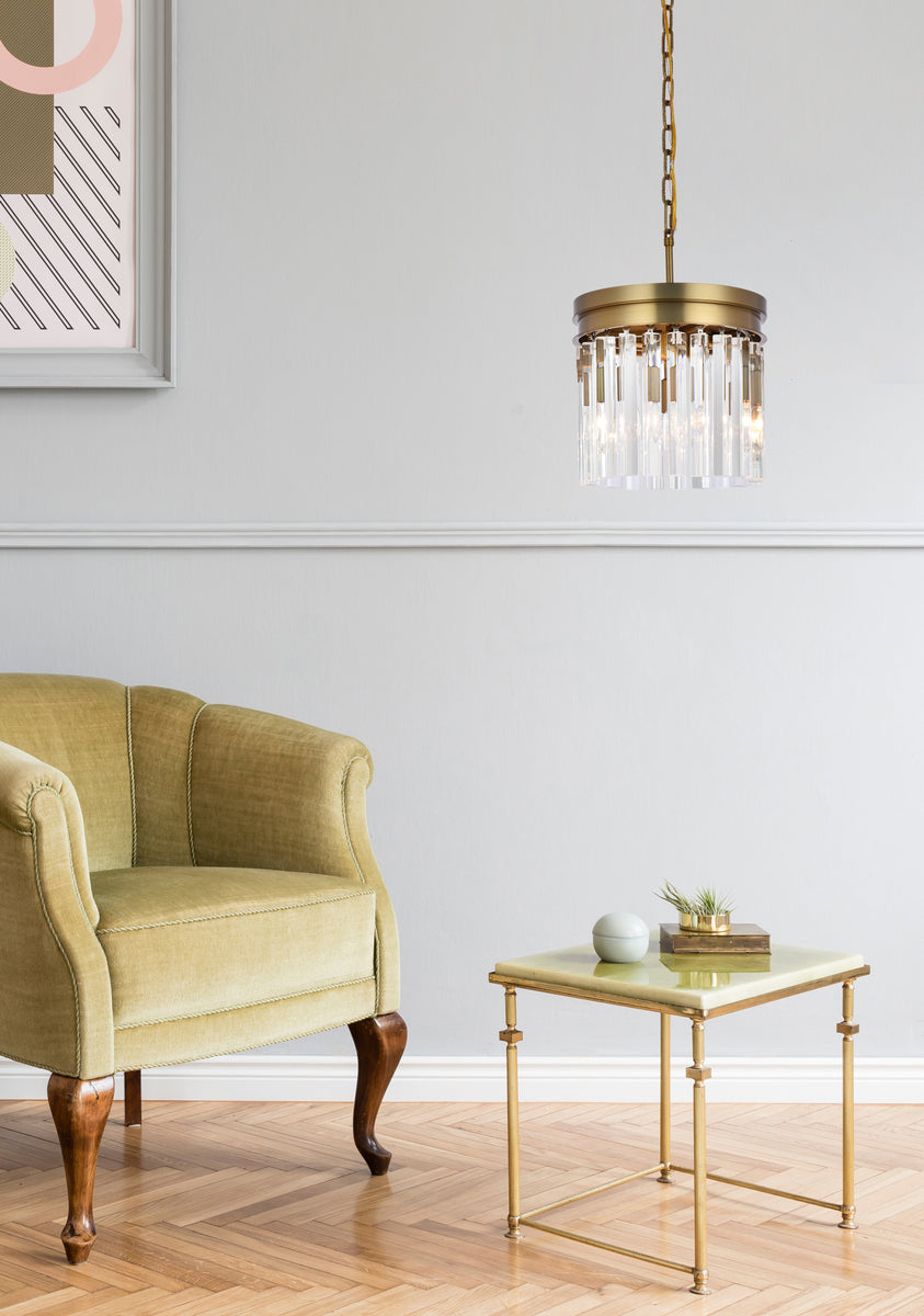 Sydney 12 inch round crystal pendant in satin gold