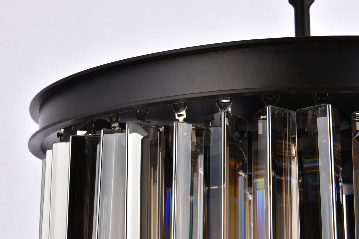 Bring the splendor of the ballroom into your home with a sparkling Sydney fixture. Stunning in foyers, dining rooms, or stairwells, the Sydney collection brings to mind the glamour of the Roaring Twenties. Features glimmering tiers of royal-cut clear, golden-teak, or Silver-shade crystals. In Matte Black or polished-nickel finishes, this sturdy, yet delicate, pendant lamp will be the perfect centerpiece for any décor.