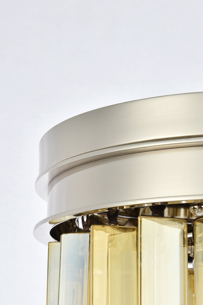 Sydney 3 light polished nickel Flush Mount Golden Teak (Smoky) Royal Cut Crystal