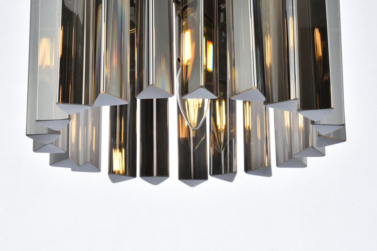 Timeless splendor and modern refinement are brought together in flush-mount Sydney fixtures. Dazzling in dining rooms, staircases, or hallways, the Sydney collection flaunts stunning tiers of royal-cut crystals in clear, golden teak, or Silver shade. A circular mocha-brown or polished-nickel finished steel frame adds understated charm to this stunning flush-mount lamp.