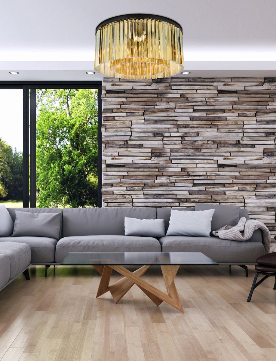 Timeless splendor and modern refinement are brought together in flush-mount Sydney fixtures. Dazzling in dining rooms, staircases, or hallways, the Sydney collection flaunts stunning tiers of royal-cut crystals in clear, golden teak, or Silver shade. A circular Matte Black or polished-nickel finished steel frame adds understated charm to this stunning flush-mount lamp.