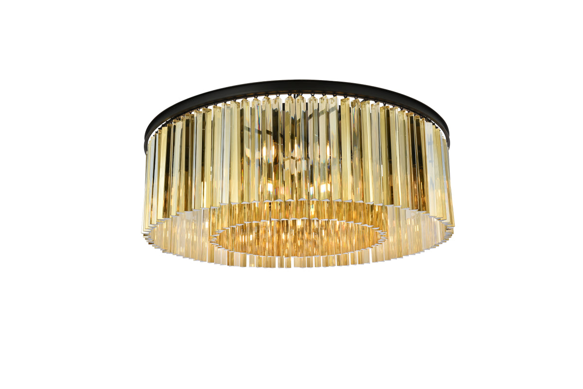 Sydney 10 light Matte Black Flush Mount Golden Teak (Smoky) Royal Cut Crystal
