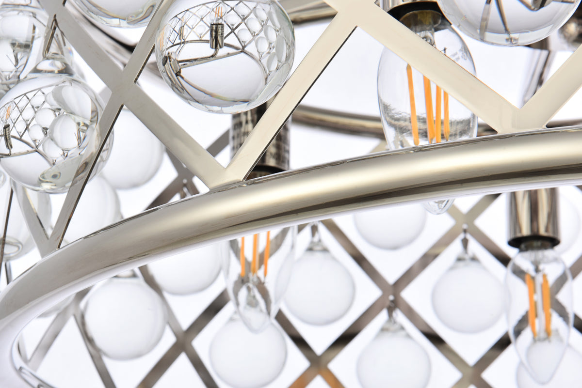 Modern simplicity meets organic beauty in the breathtakingly unique Madison collection. Hand-polished, smooth clear crystal spheres shimmer like dewdrops in a circular forged-iron grid with a golden-iron, mocha-brown, or polished-nickel finish. These airy pendant lamps will brighten up a kitchen, dining room, foyer, or stairwell in an explosion of reflected light.