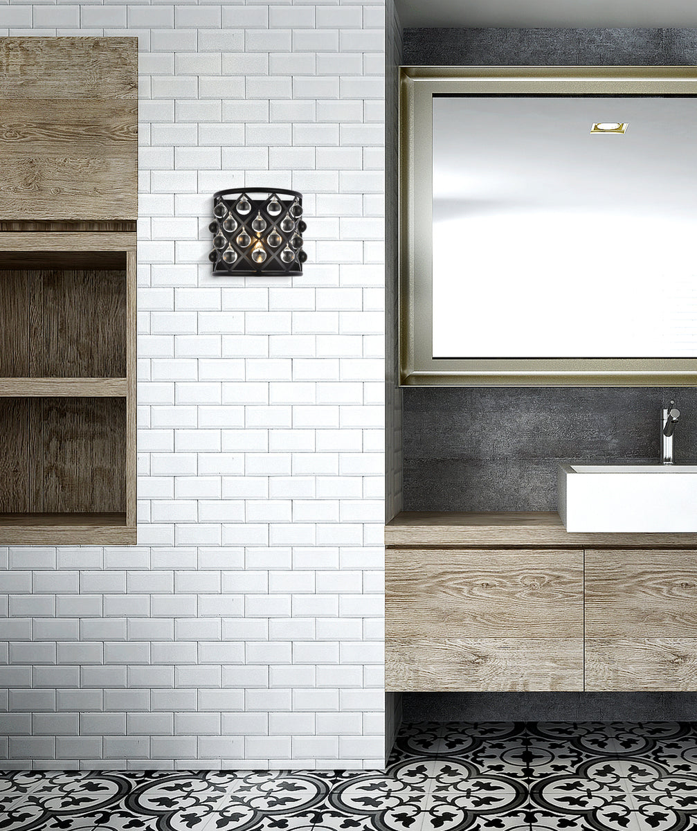 Madison 1 light Matte Black Wall Sconce Clear Royal Cut Crystal