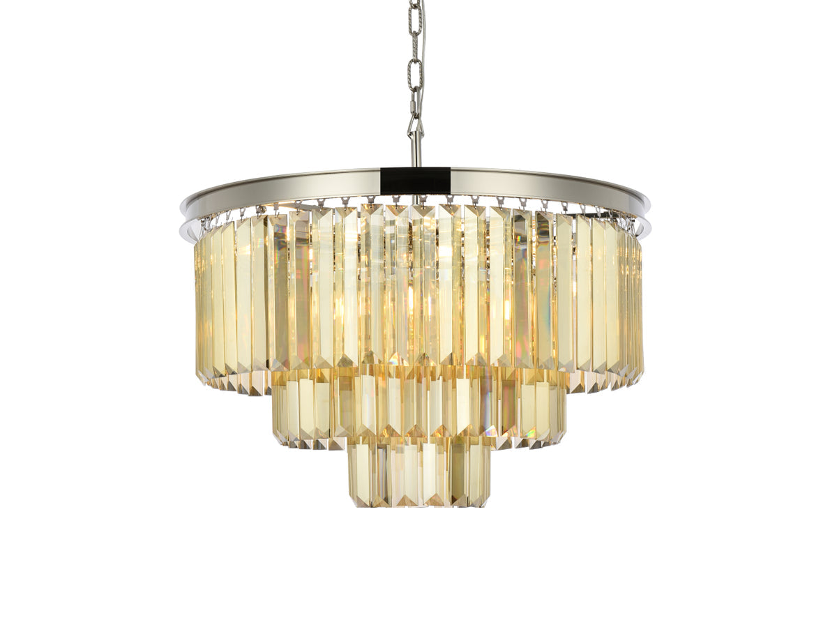 Sydney 9 light polished nickel Chandelier Golden Teak (Smoky) Royal Cut Crystal