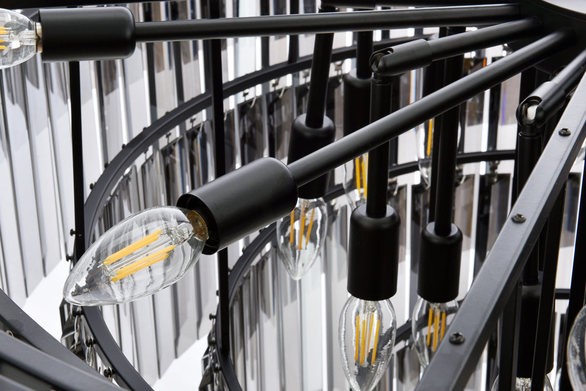 Bring the splendor of the ballroom into your home with a sparkling Sydney fixture. Stunning in foyers, dining rooms, or stairwells, the Sydney collection brings to mind the glamour of the Roaring Twenties. Features glimmering tiers of royal-cut clear, golden-teak, or Silver-shade crystals. In Matte Black or polished-nickel finishes, this sturdy, yet delicate, chandelier will be the perfect centerpiece for any décor.