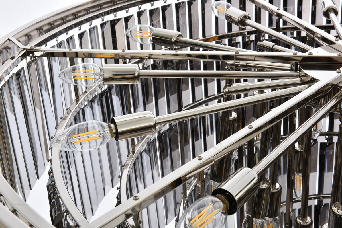 Bring the splendor of the ballroom into your home with a sparkling Sydney fixture. Stunning in foyers, dining rooms, or stairwells, the Sydney collection brings to mind the glamour of the Roaring Twenties. Features glimmering tiers of royal-cut clear, golden-teak, or Silver-shade crystals. In mocha-brown or polished-nickel finishes, this sturdy, yet delicate, chandelier will be the perfect centerpiece for any décor.