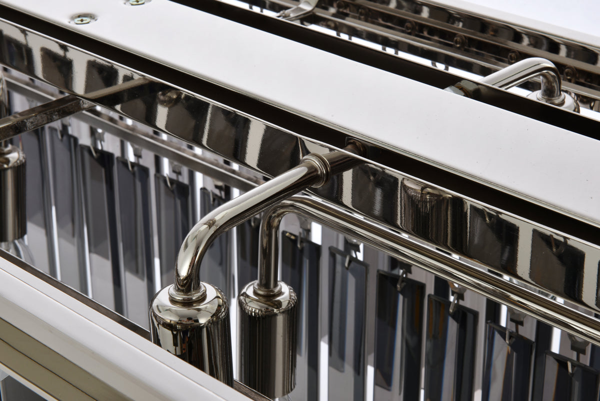 Bring the splendor of the ballroom into your home with a sparkling Sydney fixture. Stunning in foyers, dining rooms, or stairwells, the Sydney collection brings to mind the glamour of the Roaring Twenties. Features glimmering tiers of royal-cut clear, golden-teak, or Silver-shade crystals. In mocha-brown or polished-nickel finishes, this sturdy, yet delicate, pendant lamp will be the perfect centerpiece for any décor.