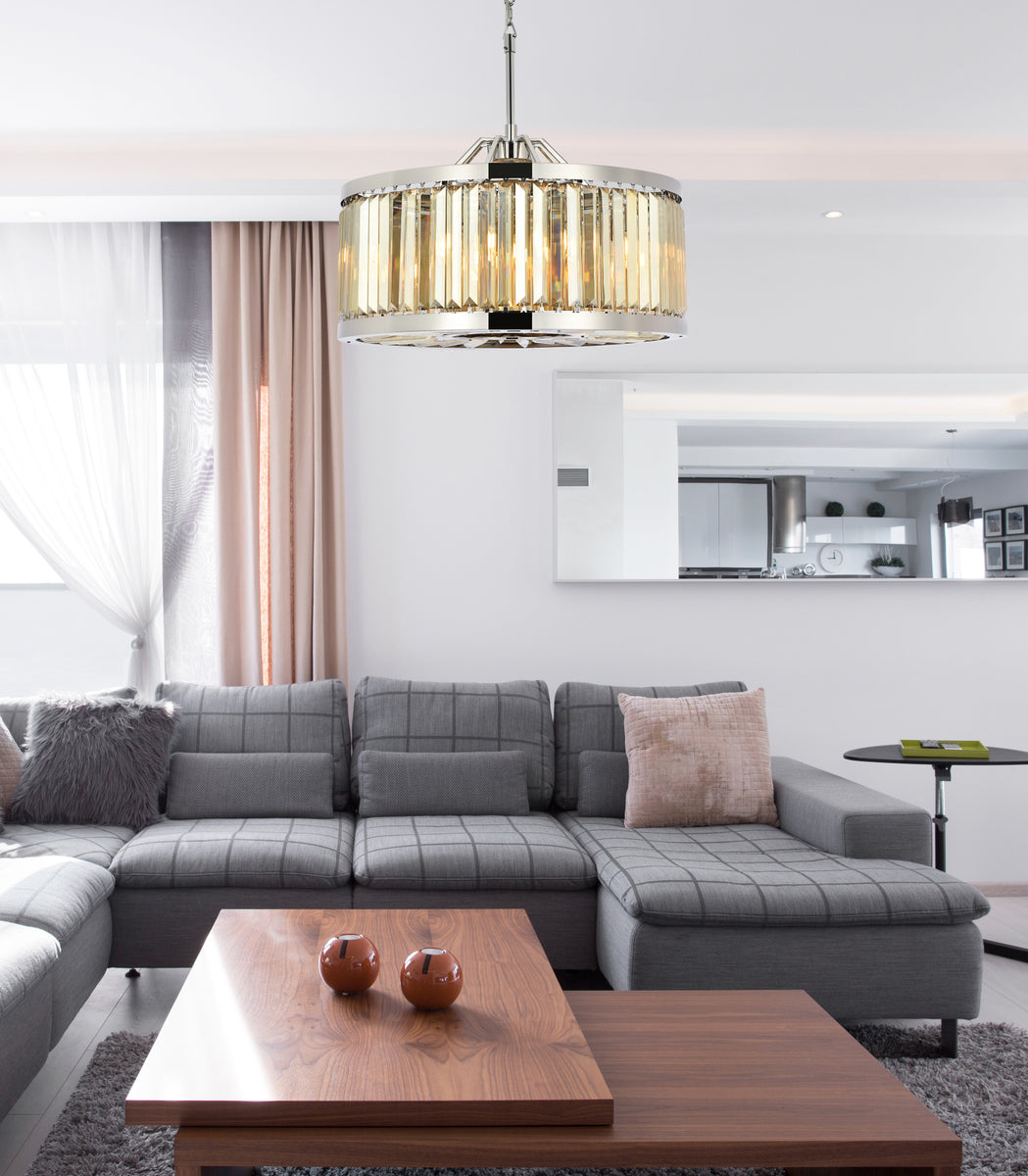 An infinity of light, caught in a circle of crystal bars in clear, golden teak, or Silver shade, the Chelsea collection will bring a shimmer of brilliance to your home. The circular steel frame in a mocha-brown or polished-nickel finish lends subtle strength to this pendant lamp design. The Chelsea collection adds transitional grace especially to a kitchen, bedroom, or dining room.