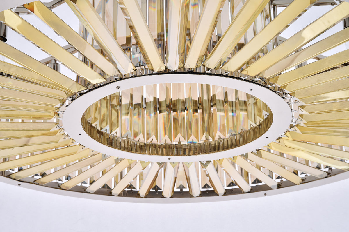 An infinity of light, caught in a circle of crystal bars in clear, golden teak, or Silver shade, the Chelsea collection will bring a shimmer of brilliance to your home. The circular steel frame in a mocha-brown or polished-nickel finish lends subtle strength to this chandelier design. The Chelsea collection adds transitional grace especially to a kitchen, bedroom, or dining room.