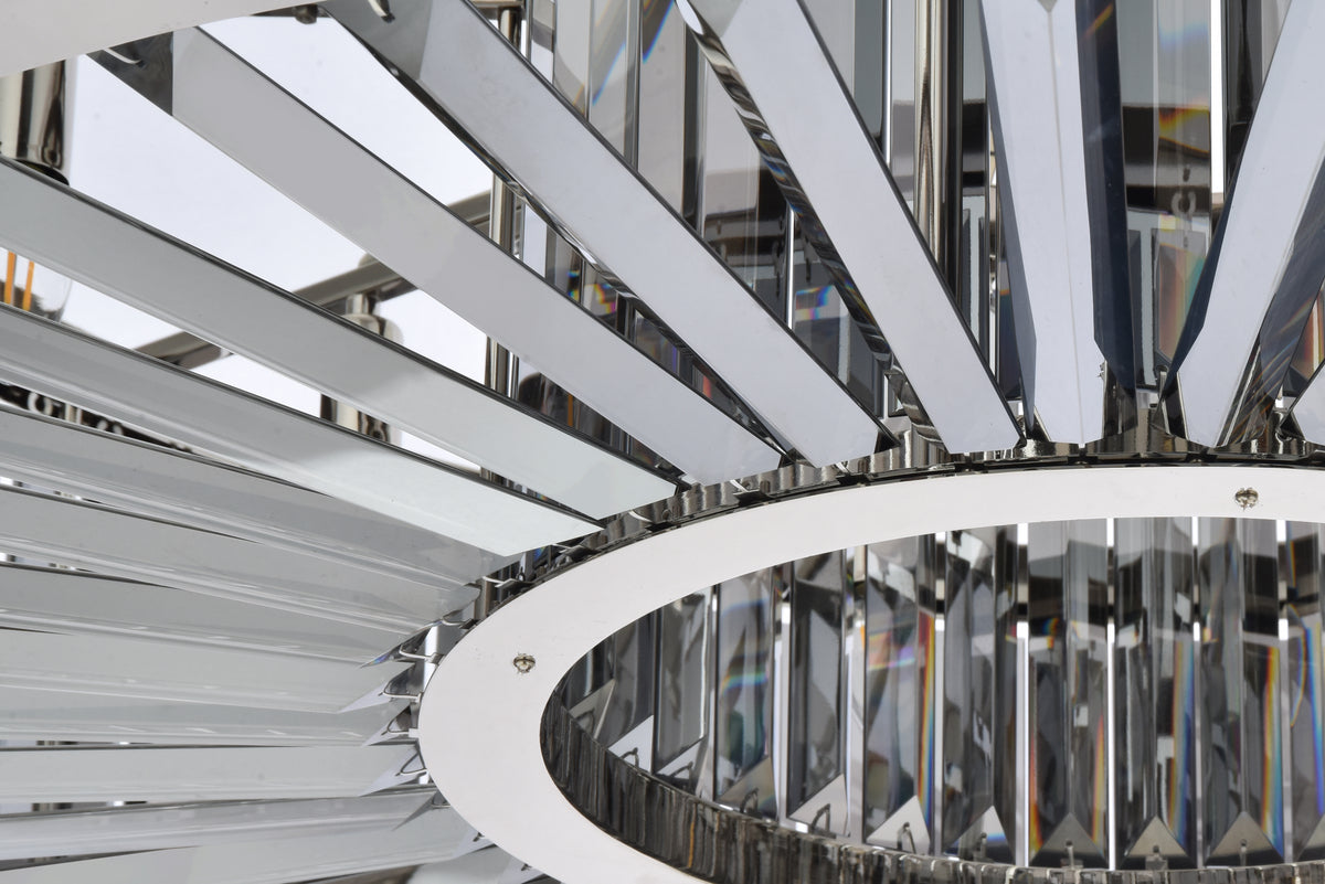 An infinity of light, caught in a circle of crystal bars in clear, golden teak, or Silver shade, the Chelsea collection will bring a shimmer of brilliance to your home. The circular steel frame in a mocha-brown or polished-nickel finish lends subtle strength to this chandelier design. The Chelsea collection adds transitional grace especially to a kitchen, bedroom, or dining room.