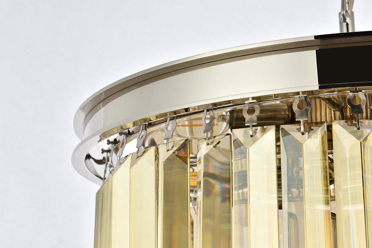 Sydney 6 light polished nickel Pendant Golden Teak (Smoky) Royal Cut Crystal