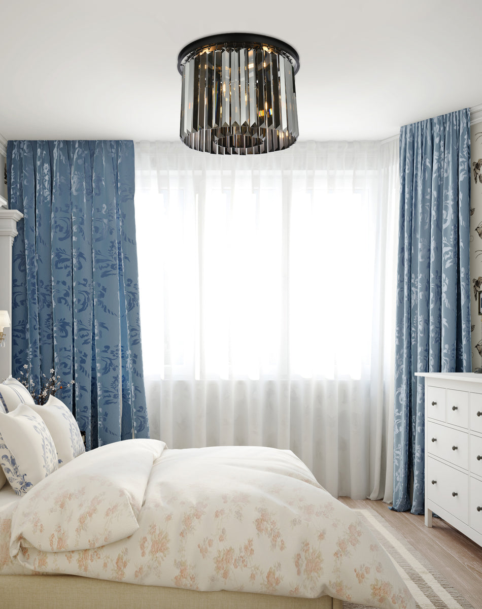 Timeless splendor and modern refinement are brought together in flush-mount Sydney fixtures. Dazzling in dining rooms, staircases, or hallways, the Sydney collection flaunts stunning tiers of royal-cut crystals in clear, golden teak, or Silver shade. A circular Matte Black or polished-nickel finished steel frame adds understated charm to this stunning flush-mount lamp.
