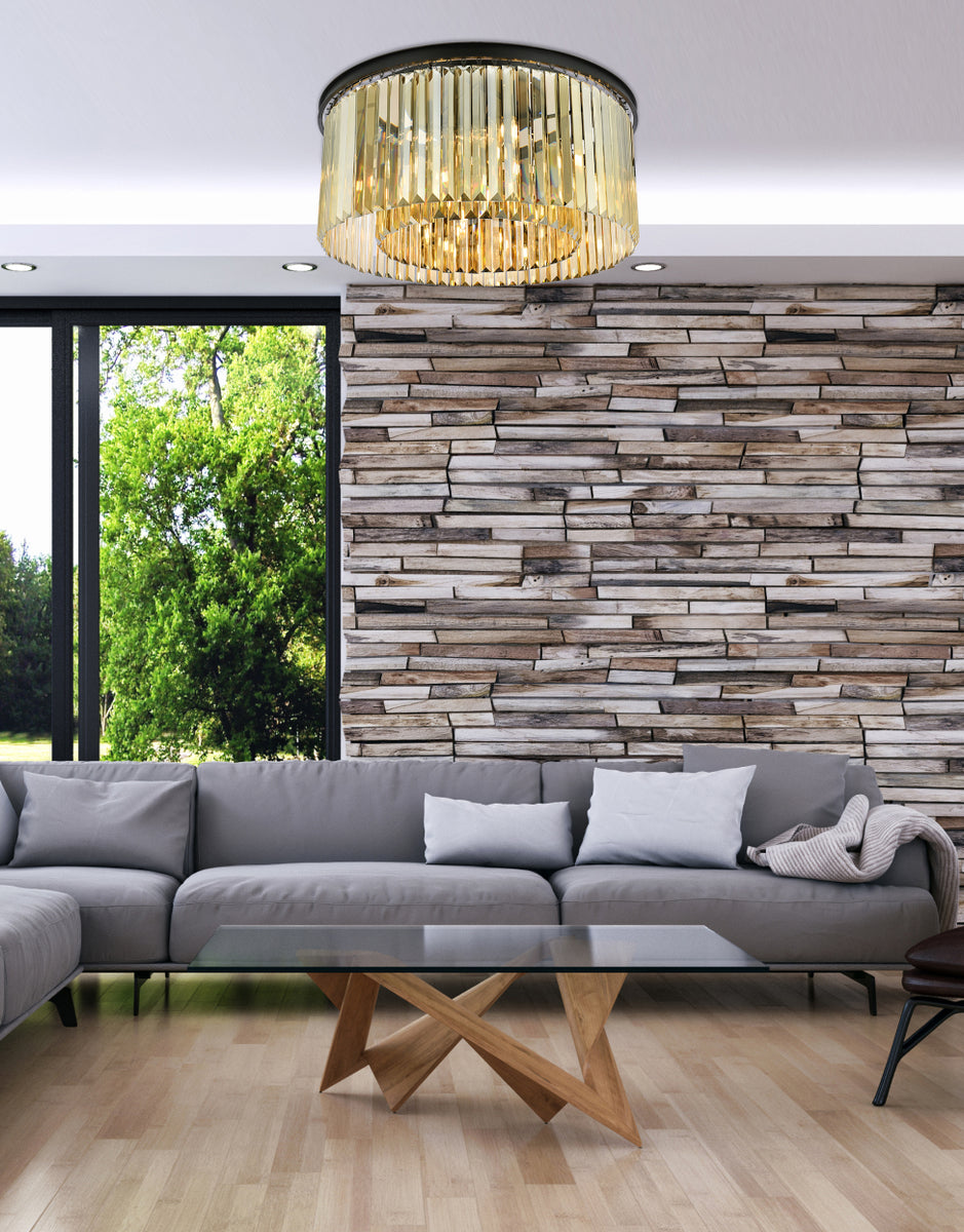 Timeless splendor and modern refinement are brought together in flush-mount Sydney fixtures. Dazzling in dining rooms, staircases, or hallways, the Sydney collection flaunts stunning tiers of royal-cut crystals in clear, golden teak, or Silver shade. A circular Matte Black or polished-nickel finished steel frame adds understated charm to this stunning flush-mount lamp.