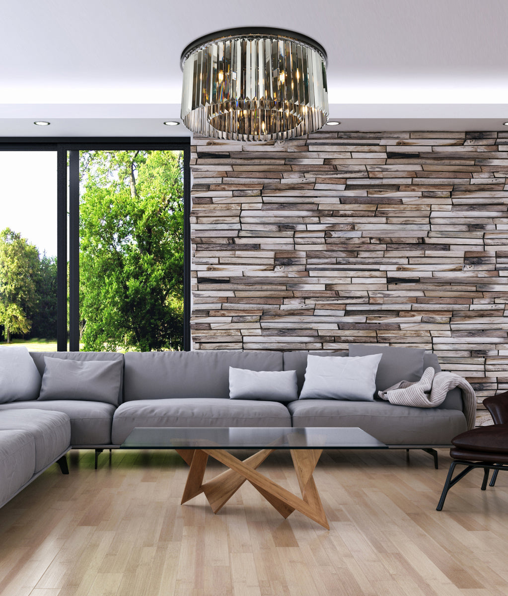 Timeless splendor and modern refinement are brought together in flush-mount Sydney fixtures. Dazzling in dining rooms, staircases, or hallways, the Sydney collection flaunts stunning tiers of royal-cut crystals in clear, golden teak, or Silver shade. A circular Matte Black or polished-nickel finished steel frame adds understated charm to this stunning flush-mount lamp.