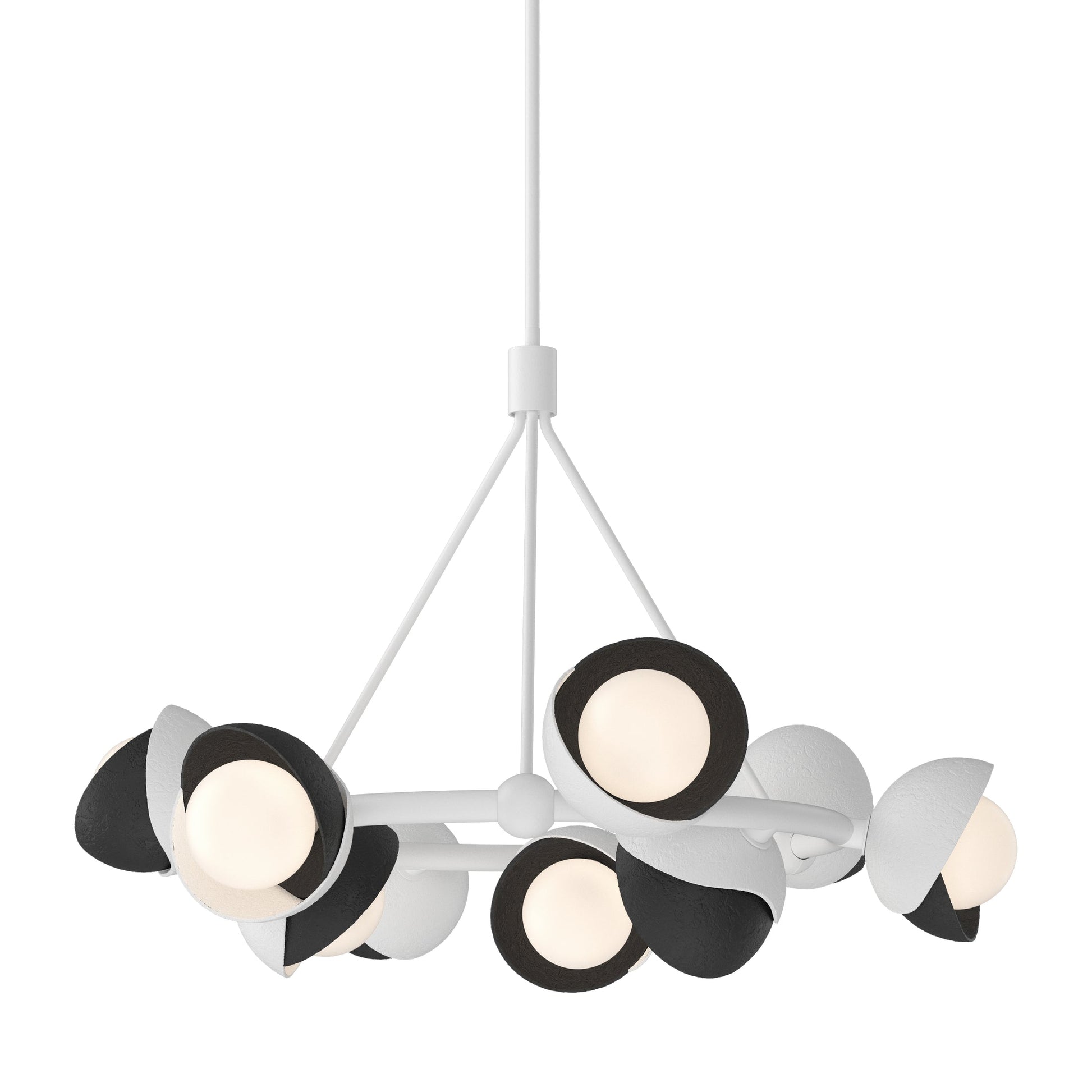 The Brooklyn Ring Pendant is a 9-light hanging fixture with a double shaded design in a circular configuration. A two-tone finish, featuring any of our 11 standard interior finish options, is available for the hand-forged and textured shades, crafted by artisans in Vermont. Multi-directional opal globes are nestled within the Brooklyn’s shades offer optimal lighting effect.