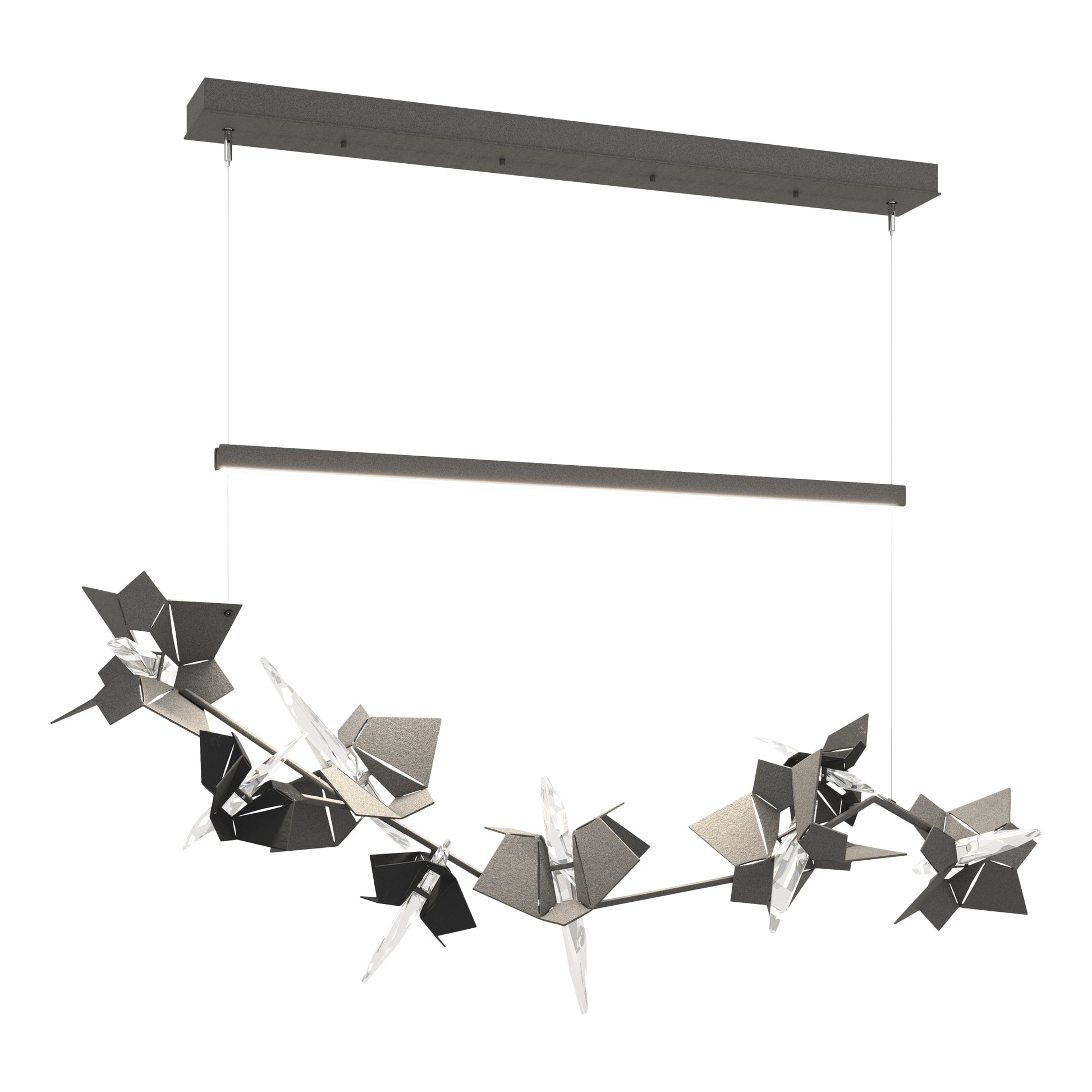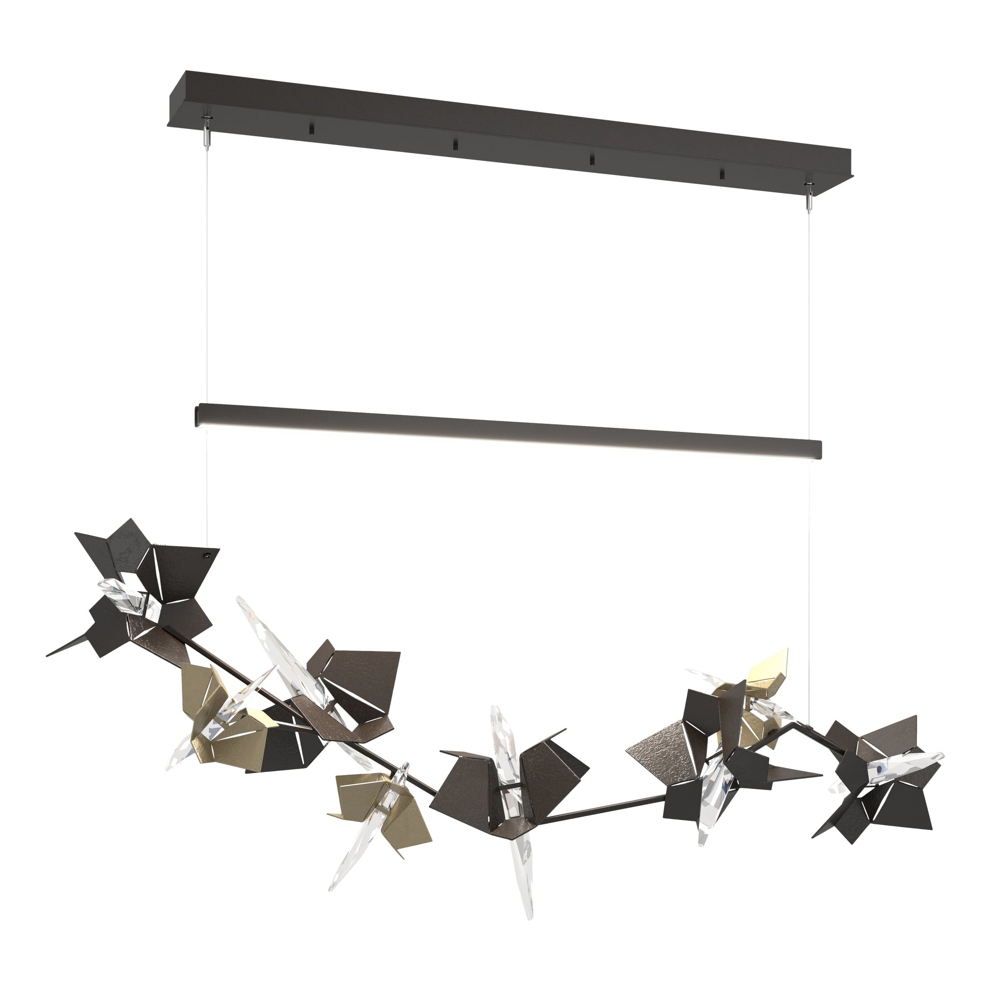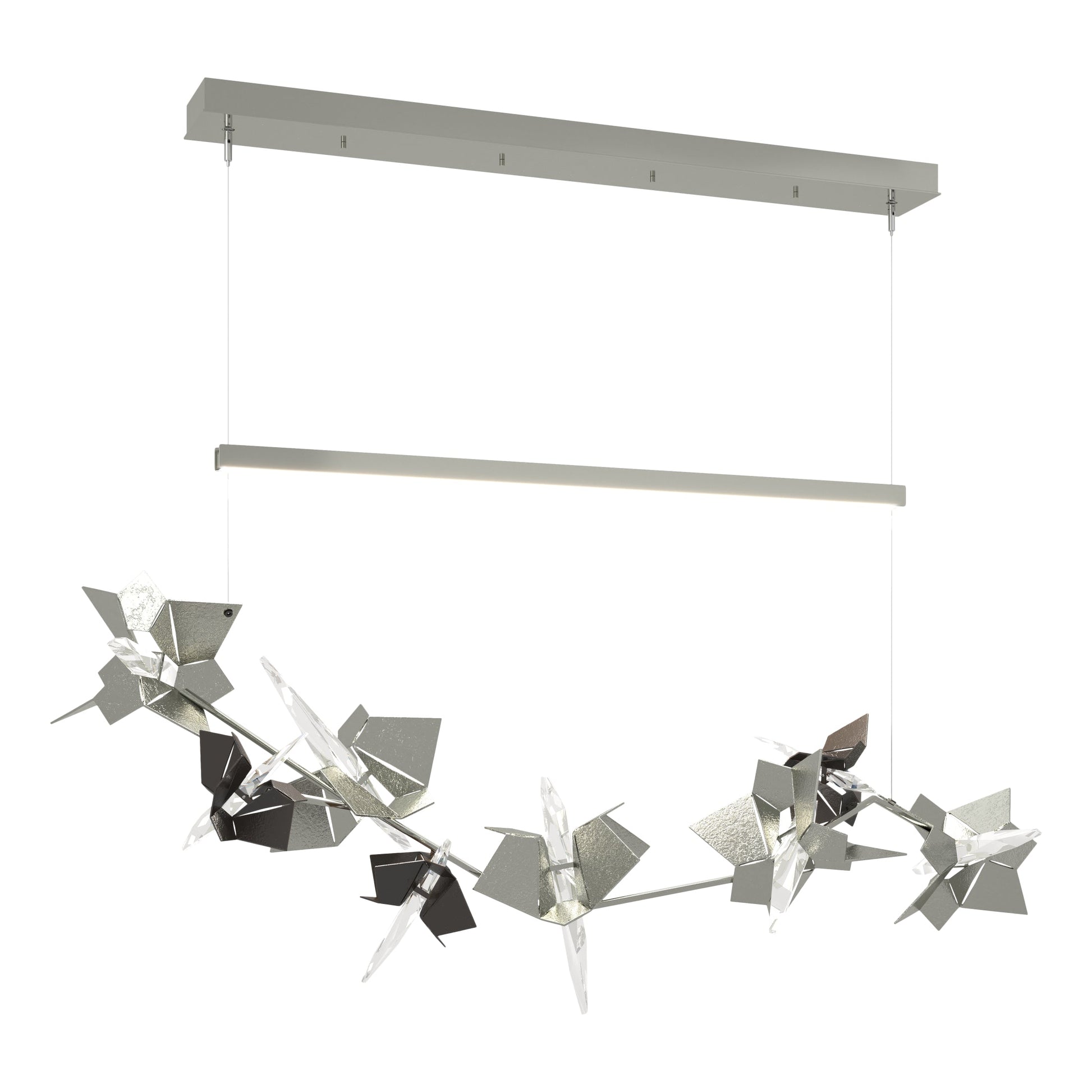 Beautiful Lady or deadly nightshade? Both describe our dramatically-lit branch of steel and crystal flowers. The three smaller florets come in your choice of nine accent colors.