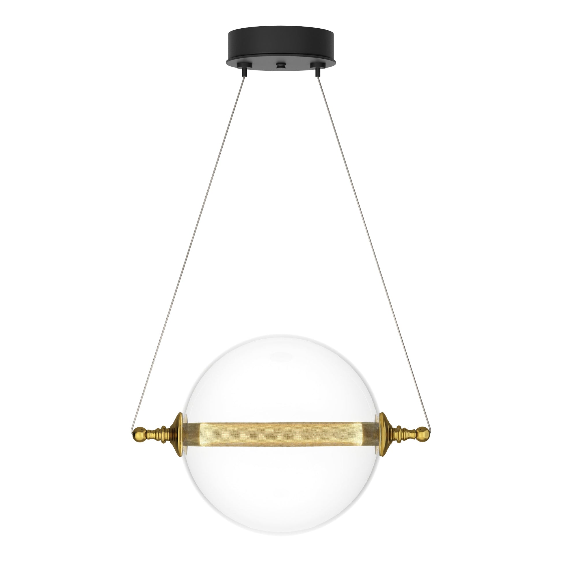 Bold and brassy, this mini pendant makes an impact. By adjusting the cables, the light element can be positioned horizontally or at an angle. The inner diffuser is a stainless steel mesh and glass.