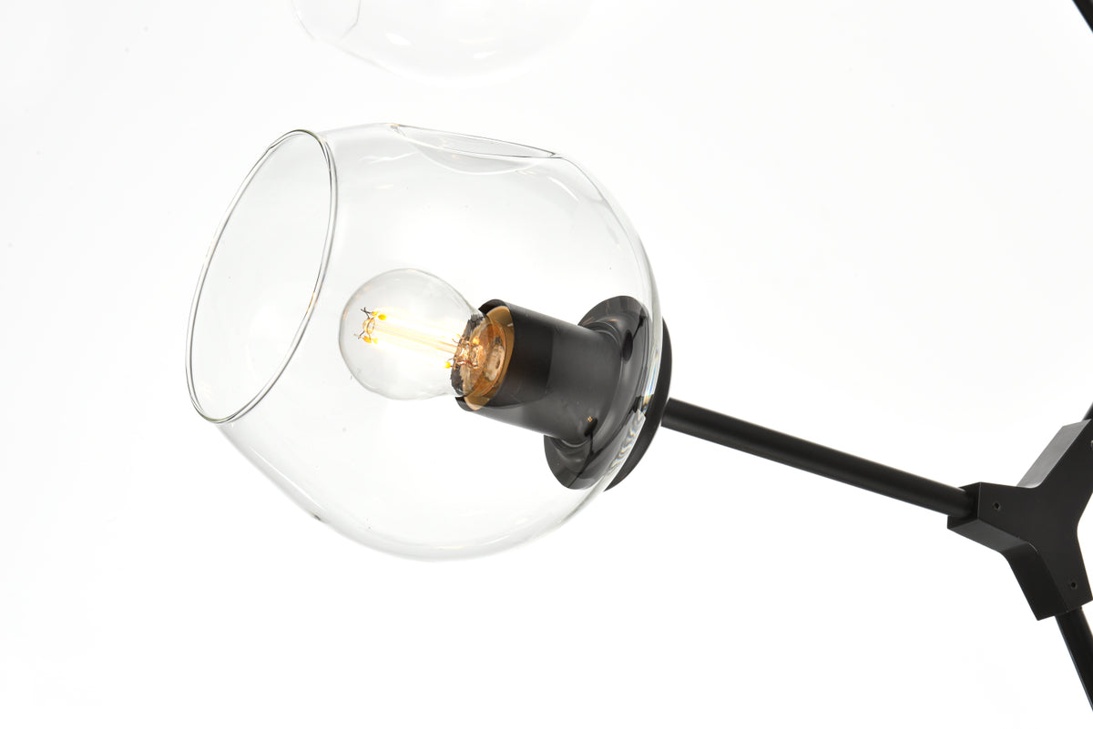 Introducing the Cavoli 49-Inch Chandelier, a perfect fusion of contemporary design and geometric allure. Crafted from durable iron, this visually captivating centerpiece not only adds a sleek modern aesthetic to your space but also ensures a robust and enduring lighting solution. The chandelier holds UL certification, guaranteeing safety and performance adherence. Boasting six lights with clear glass globe shades, this chandelier offers a stunning visual display, complemented by a dimmable feature for personalized lighting preferences. (Bulbs not included). Illuminate your space with confidence and style.