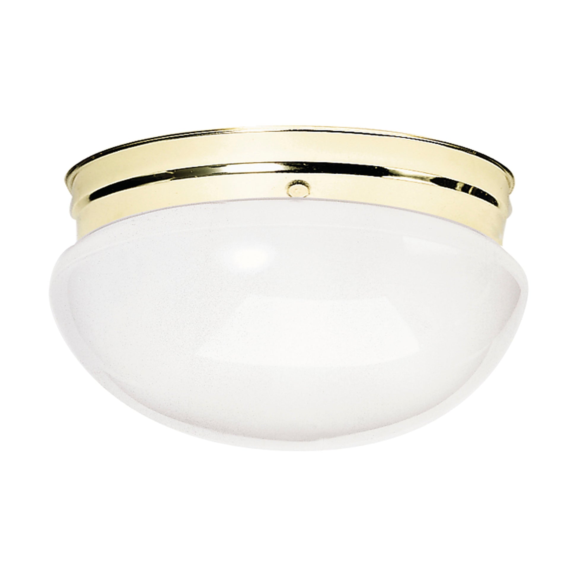 2 Light - 12" Flush with White Glass - Polished Brass Finish