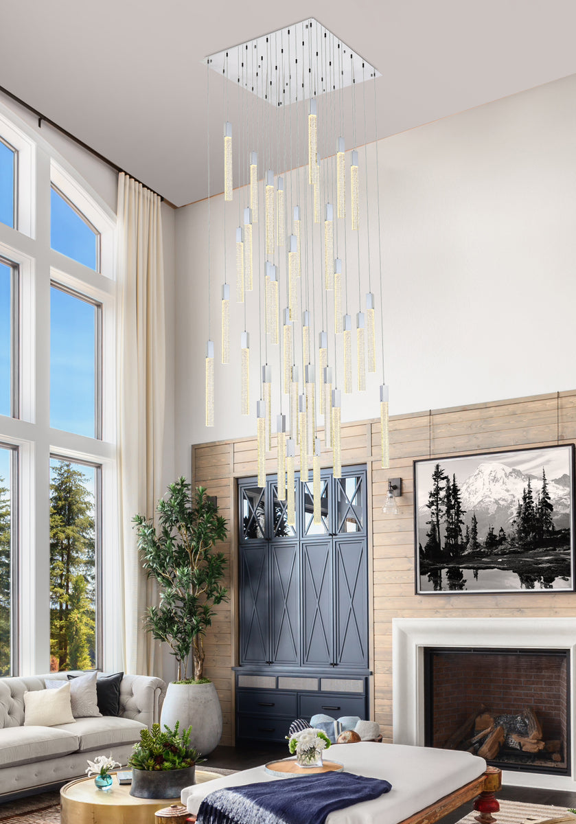 Crystal raindrops floating in a crystal bar balanced in mid-air. Everything about our Weston Collection is ethereal. This collection can be placed in any room of your home as an accent or as a primary feature. When lit up in the evening they are truly an amazing sight, sure to add the wow factor to your home or workplace.