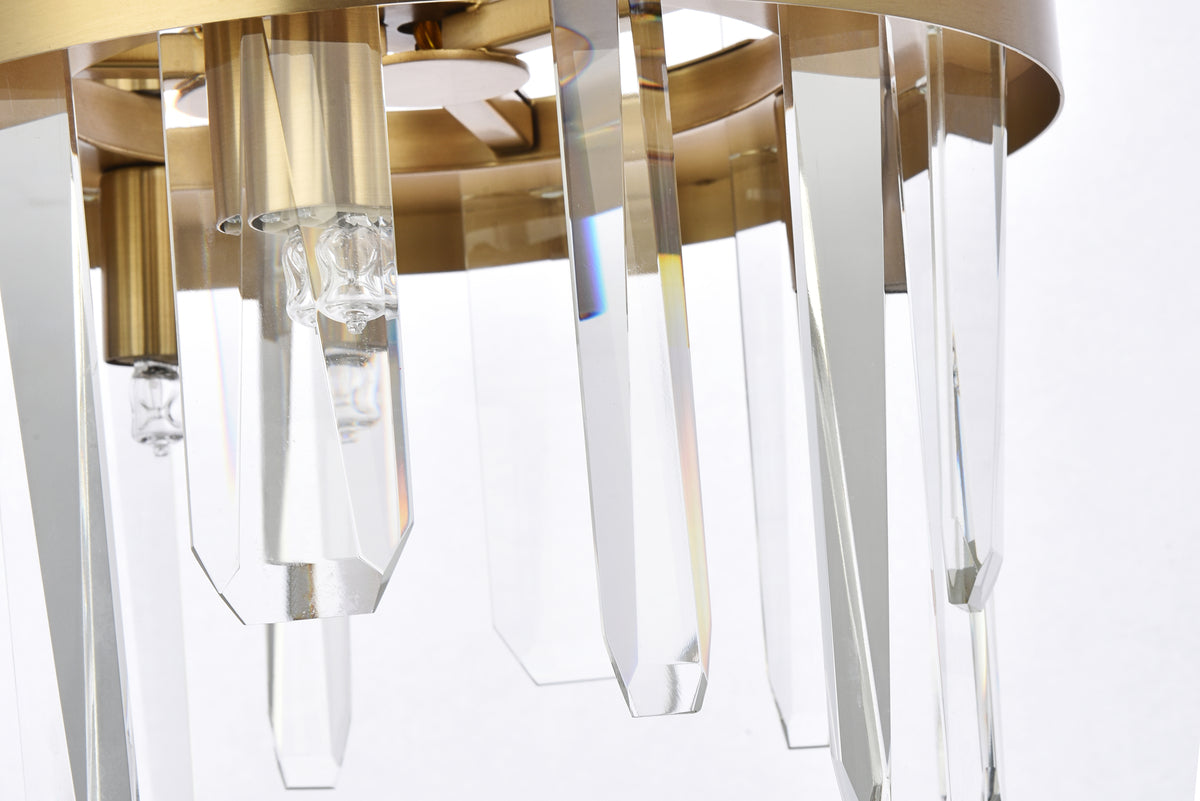 Modern crystal chandelier features top and bottom tier crystal prisms staggered along the wrought iron frame. The thick metal frame wraps around top grade crystal prisms ensure it is built to last, definitely worth it. Hang this work of art and dim the lights for a bit of sophisticated lighting in your home. Get lost in a beautiful light and sleek design available in multiple finishes. The hanging rod conveniently comes with a slope ceiling adapter, perfect for your vaulted or angled ceiling.