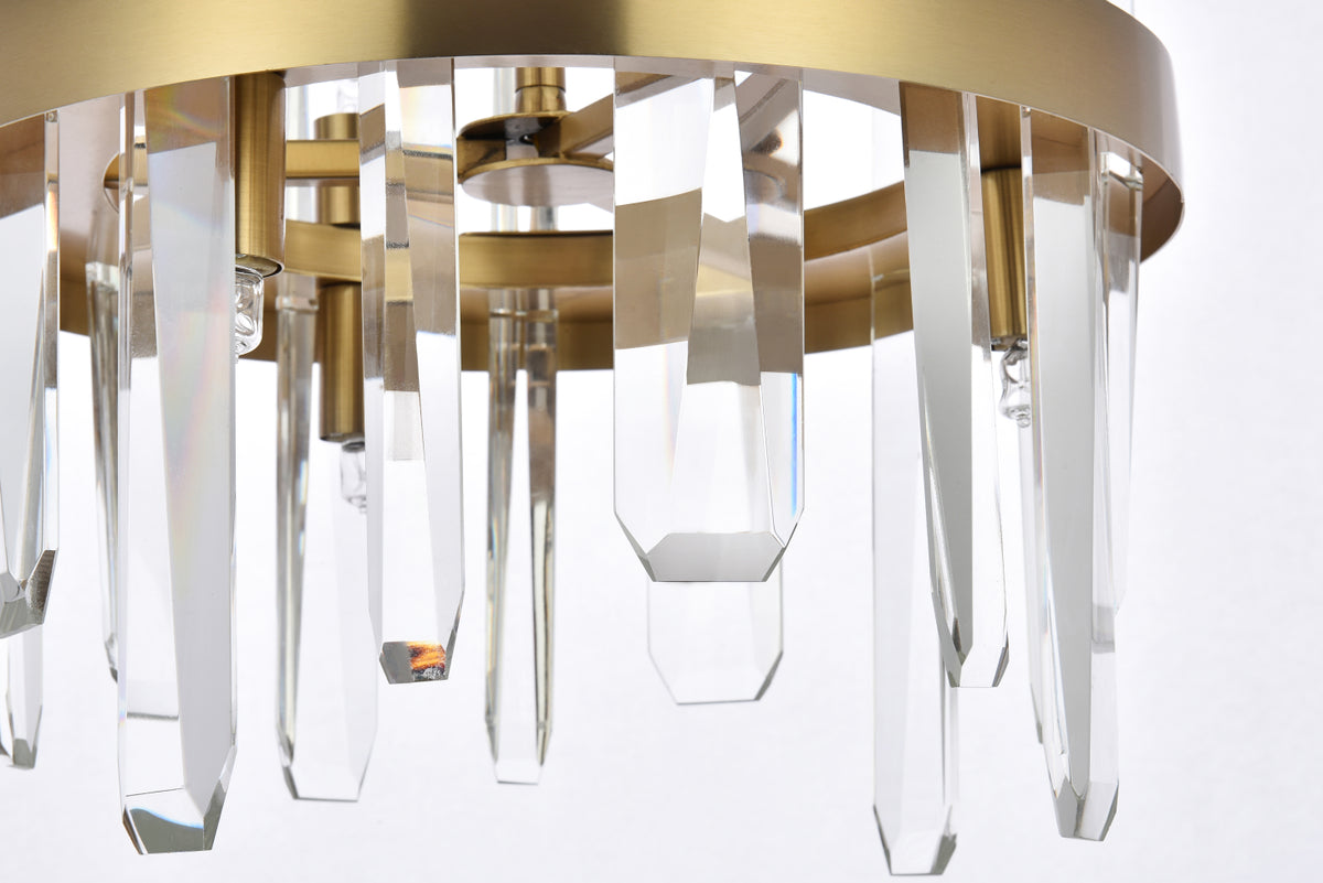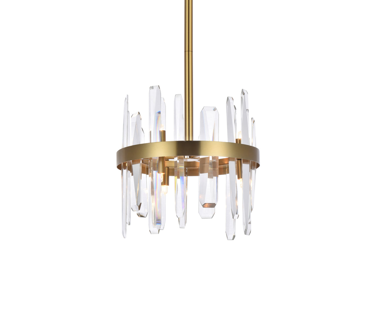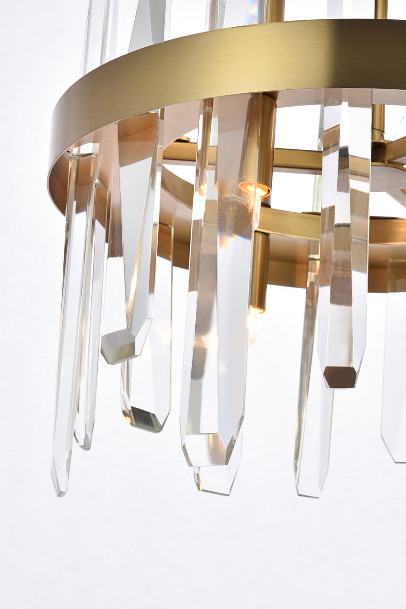 Serena 12 inch crystal round pendant in satin gold
