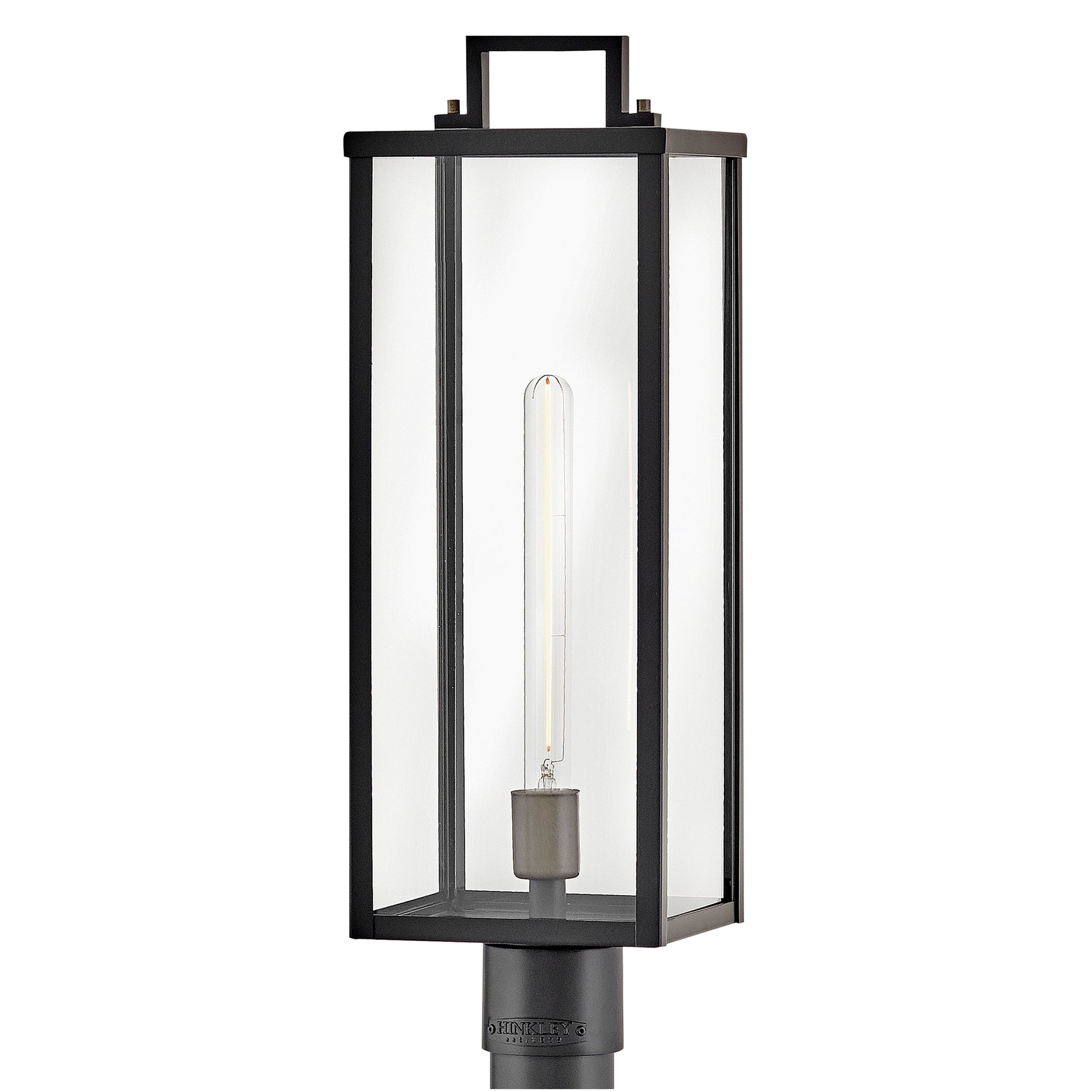 Striking and airy, Catalina breathes modern simplicity into outdoor spaces. Oversized clear glass, a unique single socket, and a two-tone Black with Burnished Bronze finish pair perfectly to present a statement-making fixture. The finishing touch is a floating effect created by the classic rectangular lantern design suspended from a top knob.