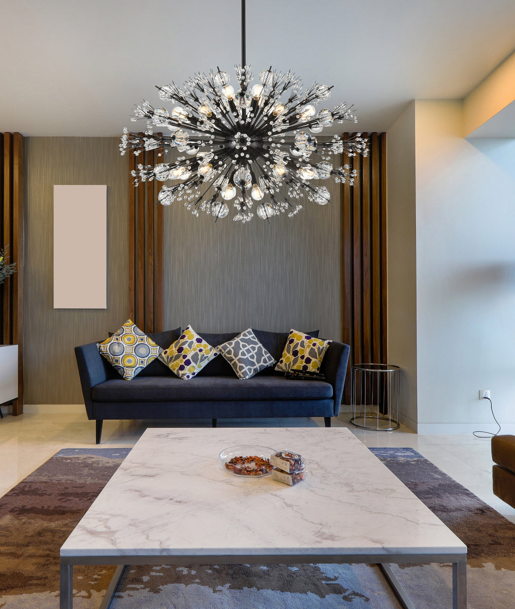 Vera 36 inch crystal starburst oval pendant in black