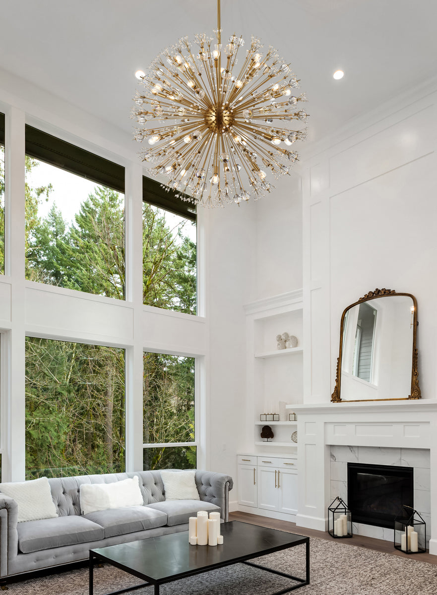 Like an explosion frozen in time, Vera collection hanging fixtures are suspended chaos. Clear large crystal balls and sprays of smaller crystals swirl amidst exposed candelabra bulbs (not included) balanced on dainty wires. A gleaming steel sphere forms the epicenter of the storm. A touch of savage beauty that easily compliments a kitchen, entryway, or bedroom. Sloped ceiling adaptable with a durable swivel could be mounted on vaulted or angled ceilings