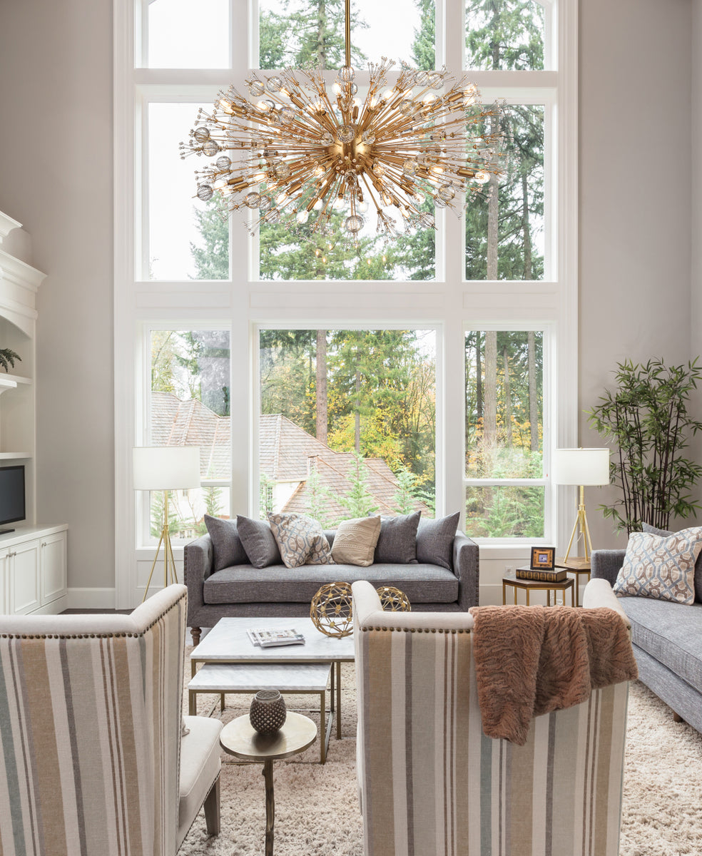 Vera 48 inch crystal starburst oval pendant in gold