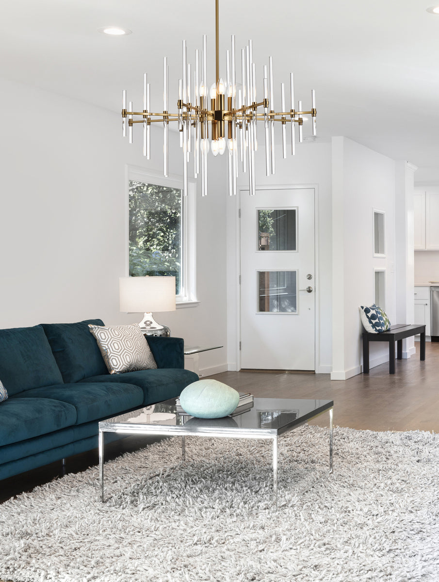 Enjoy the beautiful design of the Sienna collection pendants. The clear crystal rods seem as if they are following the direction of the lights bringing about illumination. Is it the sun? Is it a new day? No, it's simply just a fabulous light pendant! The perfect addition to your home, whether it's the living room, dining room, office or the entryway. Sloped ceiling adaptable with a durable swivel could be mounted on vaulted or angled ceilings.